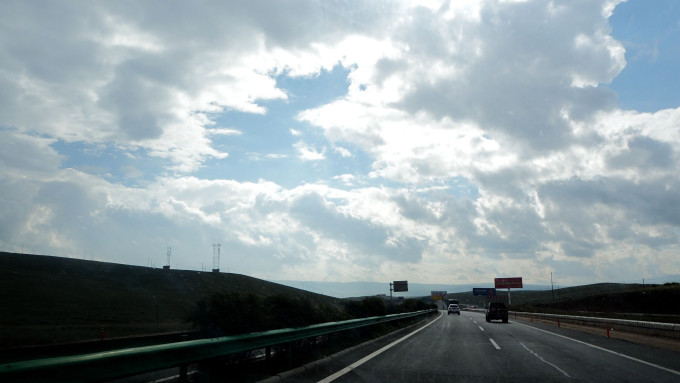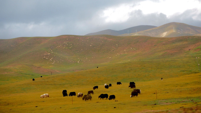 开着开着,过了那片云彩就不下了,还看见了牦牛,一路上我都在叮嘱,慢点开,别撞着(虽然有围栏,它们出不来),咱们可赔不起。