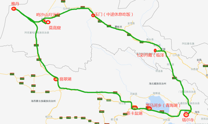 实际走的过程中,有的地方是没有去的,而且最后两天的行程临时变动了,因为到了张掖,住宿老板说祁连在下雪,我们担心路况及安全问题,所以我们在张掖住了两晚,然后直接出发回西宁,没有再在祁连留宿,最后事实证明我们的临时决定是明确的。