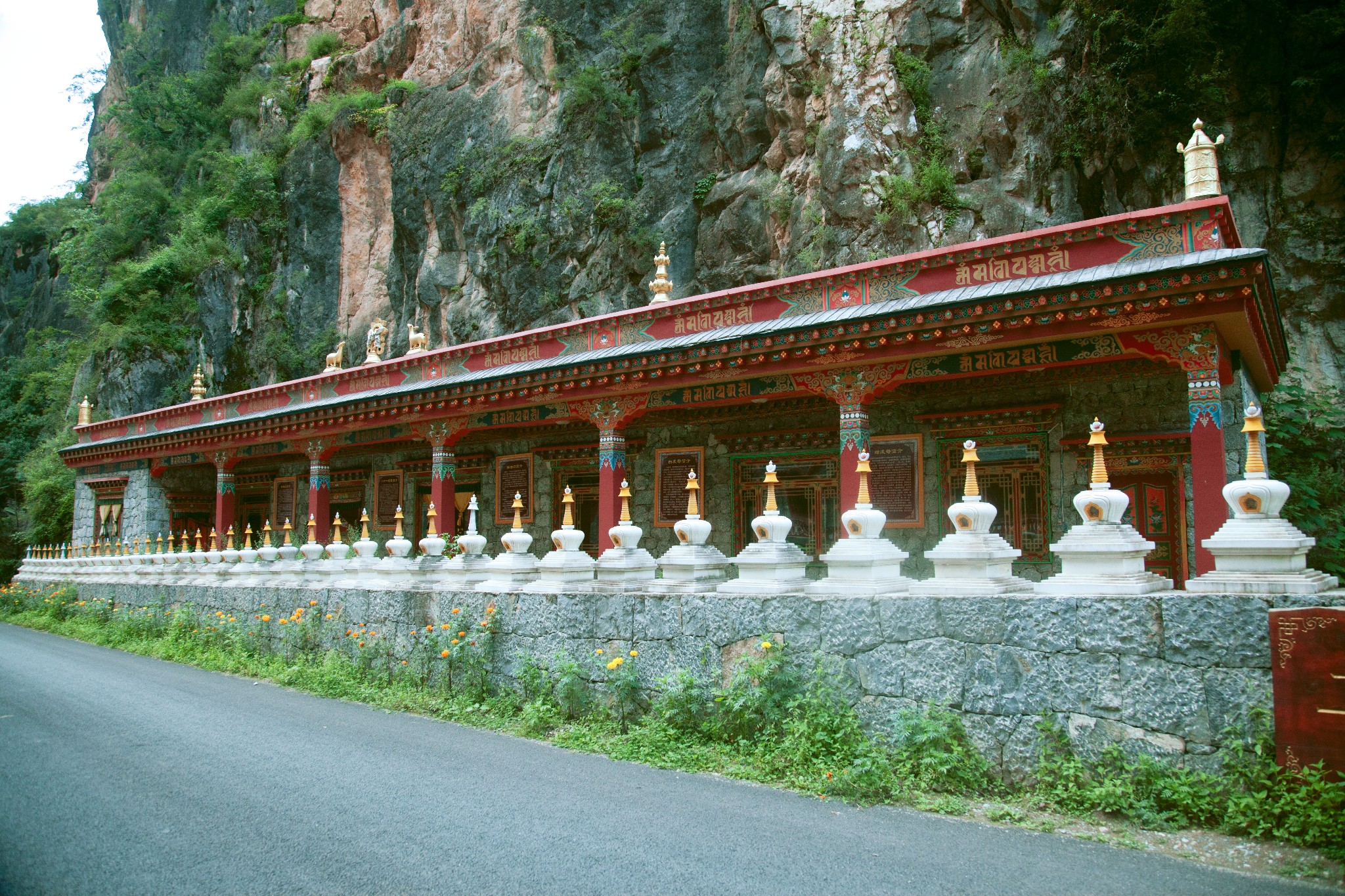 菩提树的树干上不知道何时自然成长出了一只佛手,紧紧攀着崖壁,更为当地人敬畏。许多信徒会站在树前虔诚祈福,愿世人平安喜乐,一方富足,扎西德勒。