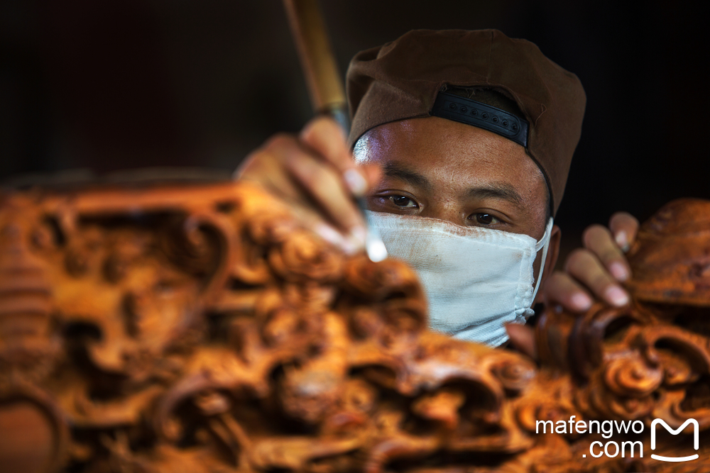 ▲东阳是“世界木雕之都”,境内有不少手艺人。这位木雕艺人为红木家具做最后的加工。