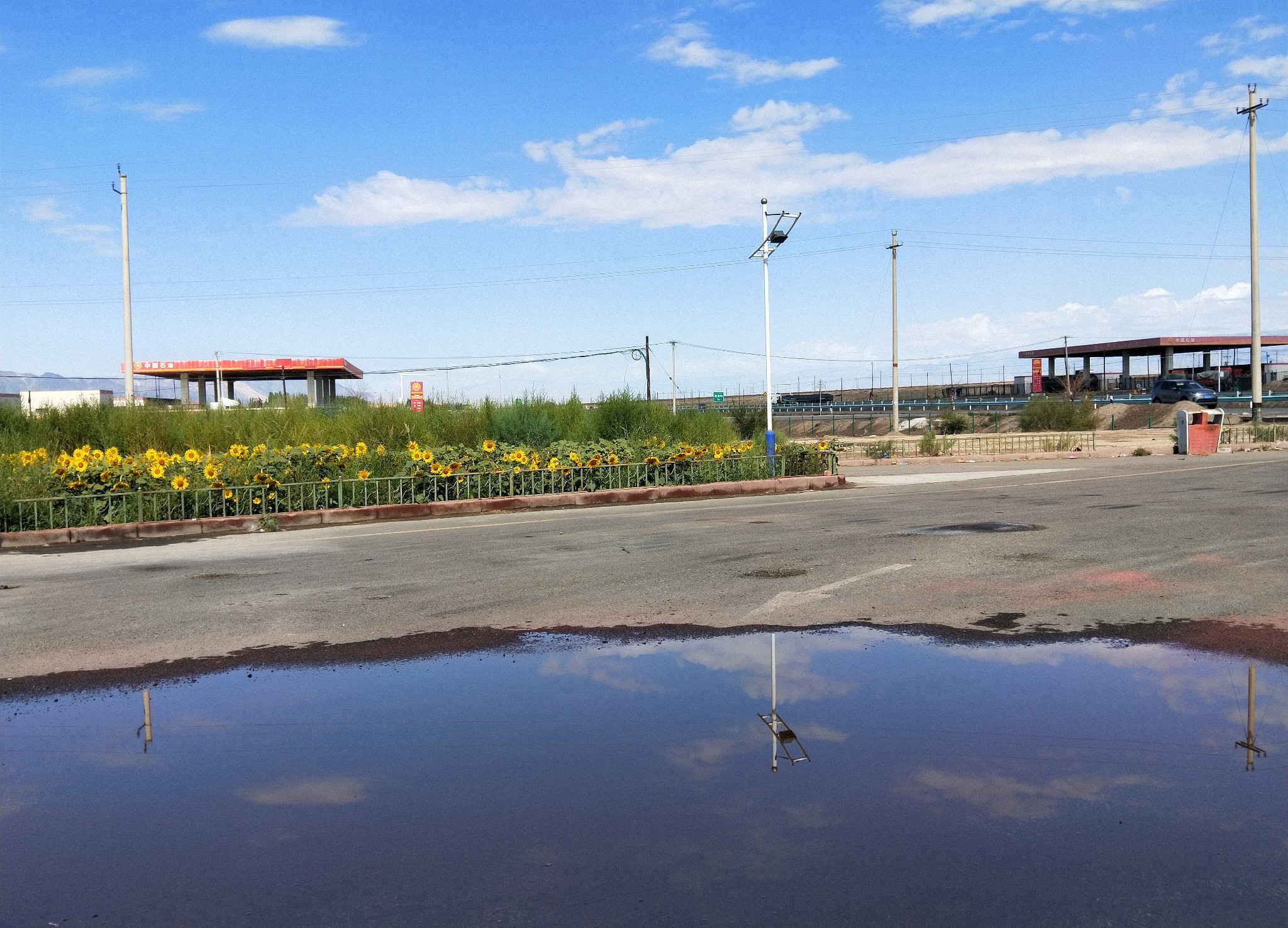 近四个小时的茫茫戈壁之后,旅游车进入了近似荒漠的甘谷