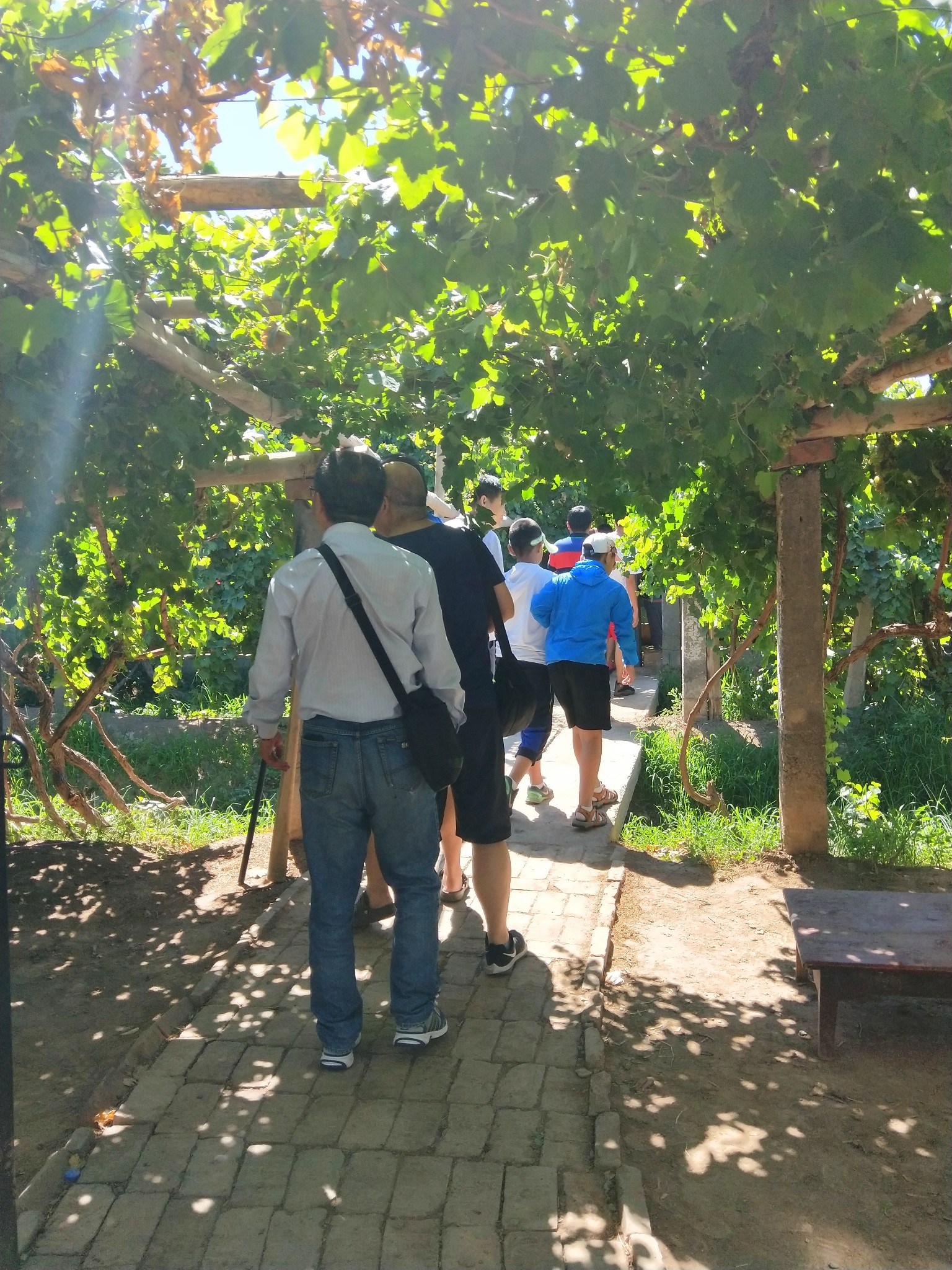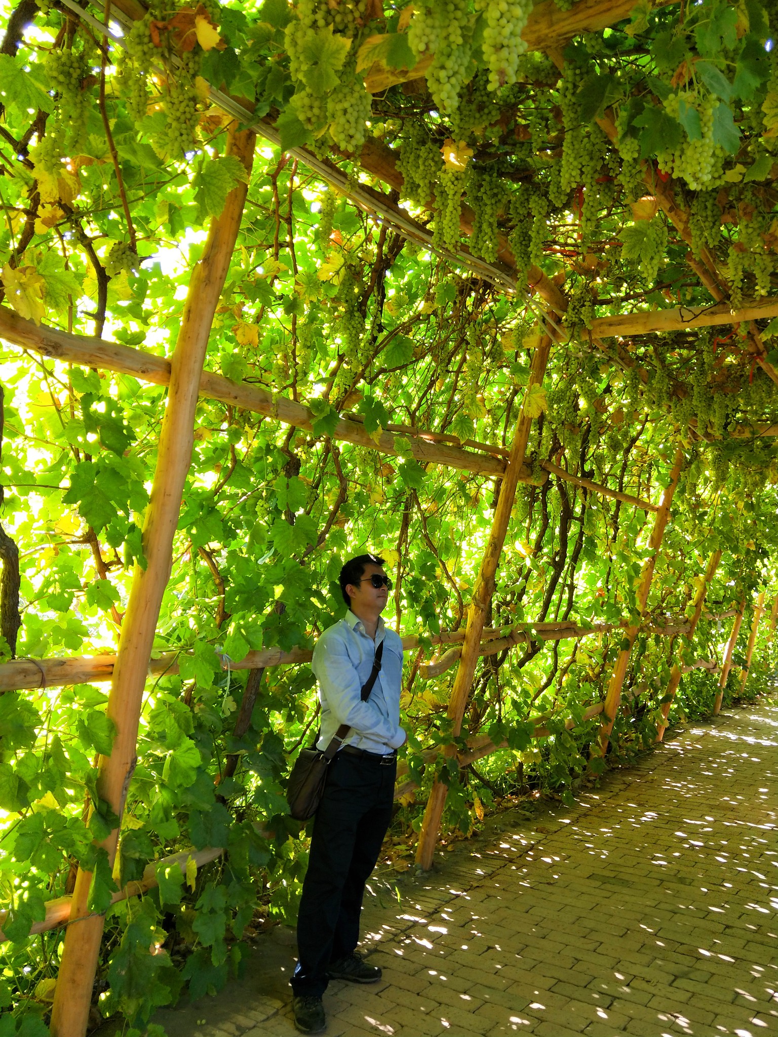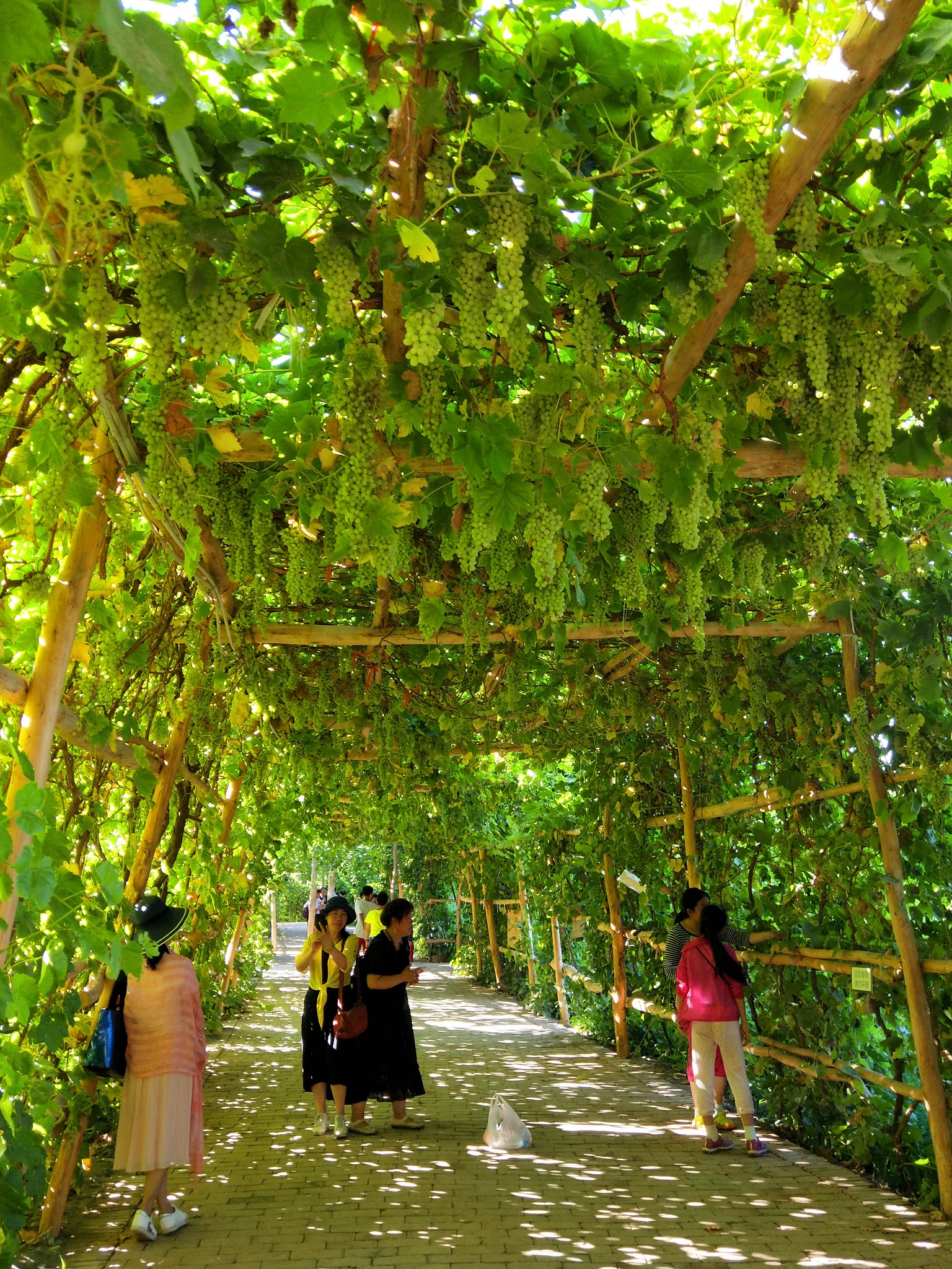 这里葡萄架遍布,葡萄籘匍伏蔓延, 层层迭迭,绿绿葱葱