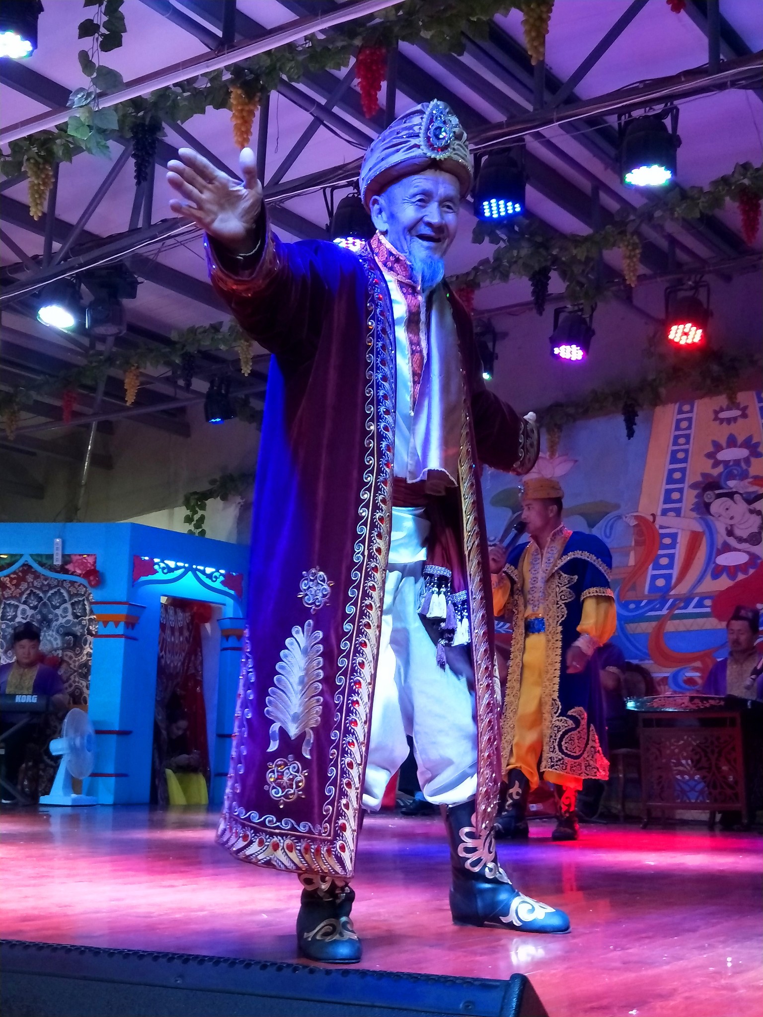 十二木卡姆始终采取师徒相传,口传心授的形式,现在还能演唱的人已不多,台上这位103岁高龄的老艺人已成为艺术传承的瑰宝
