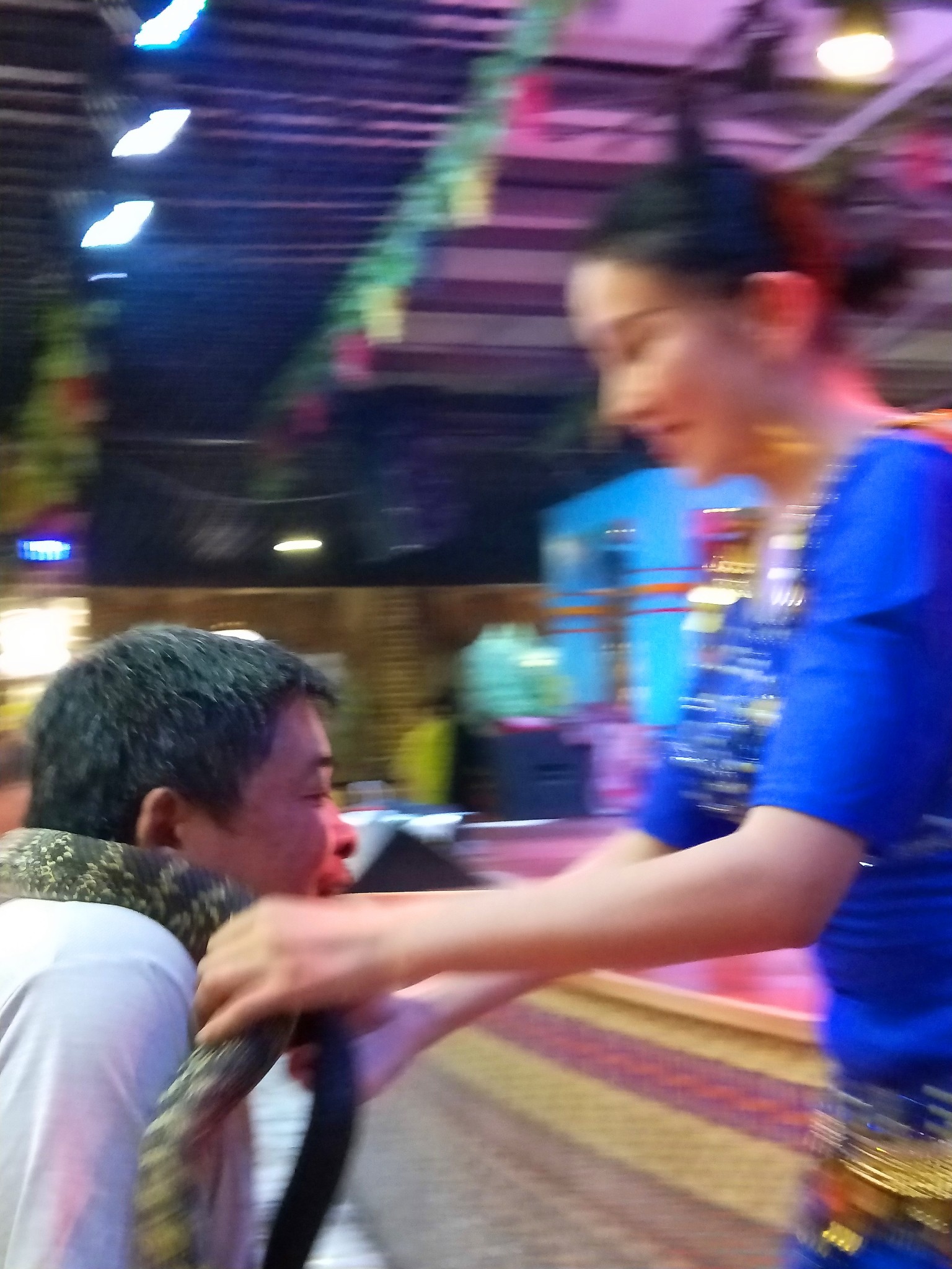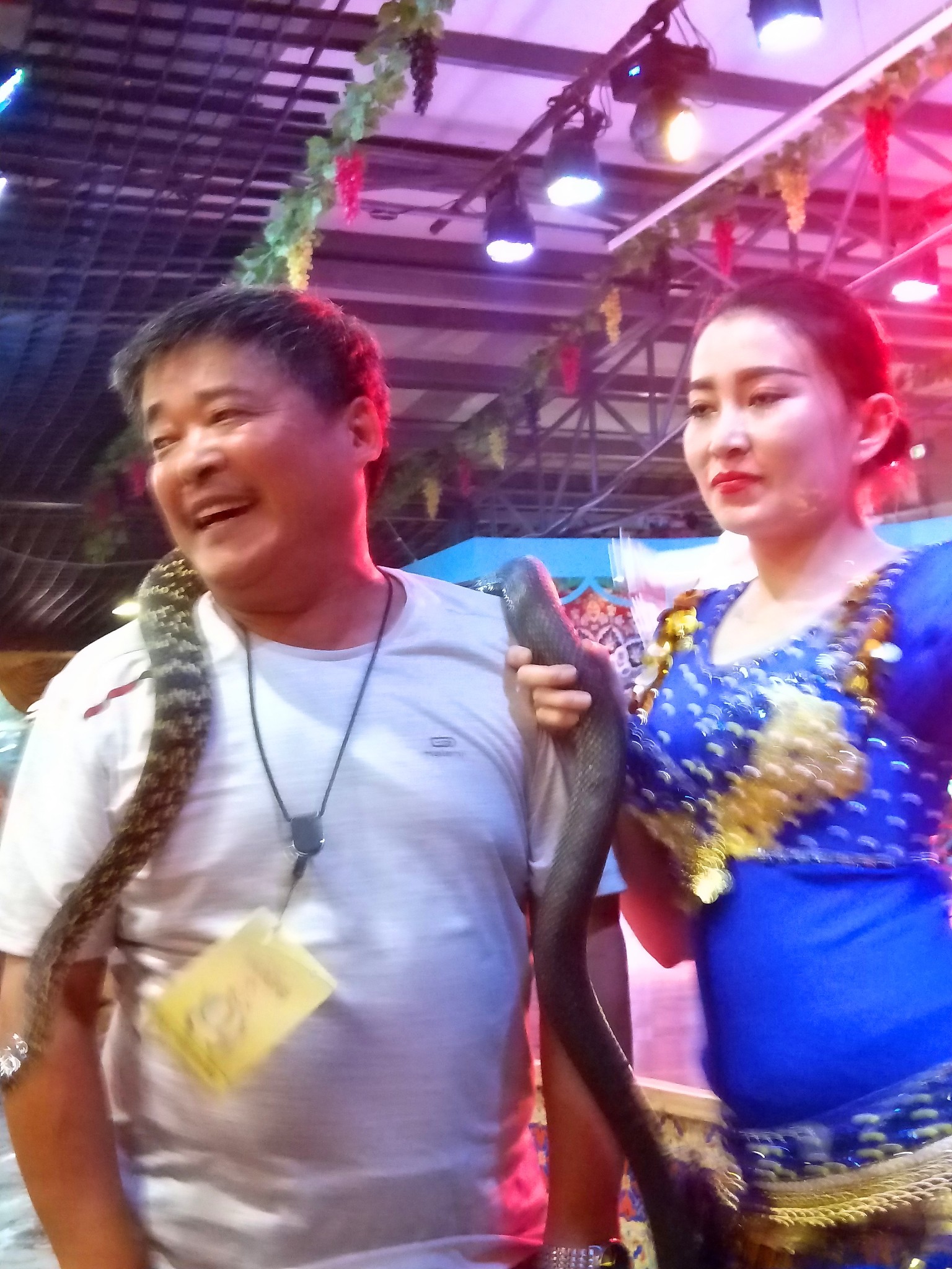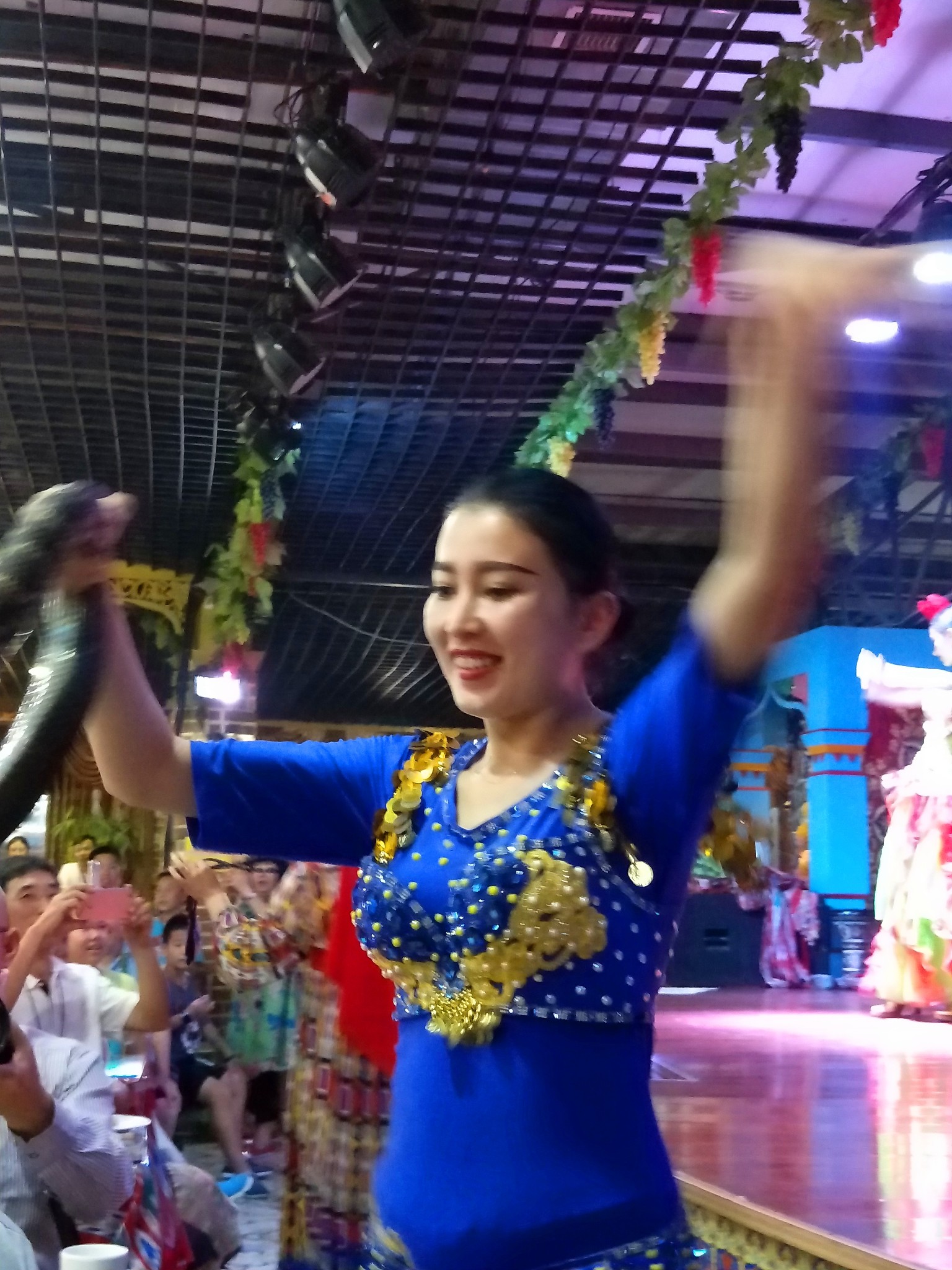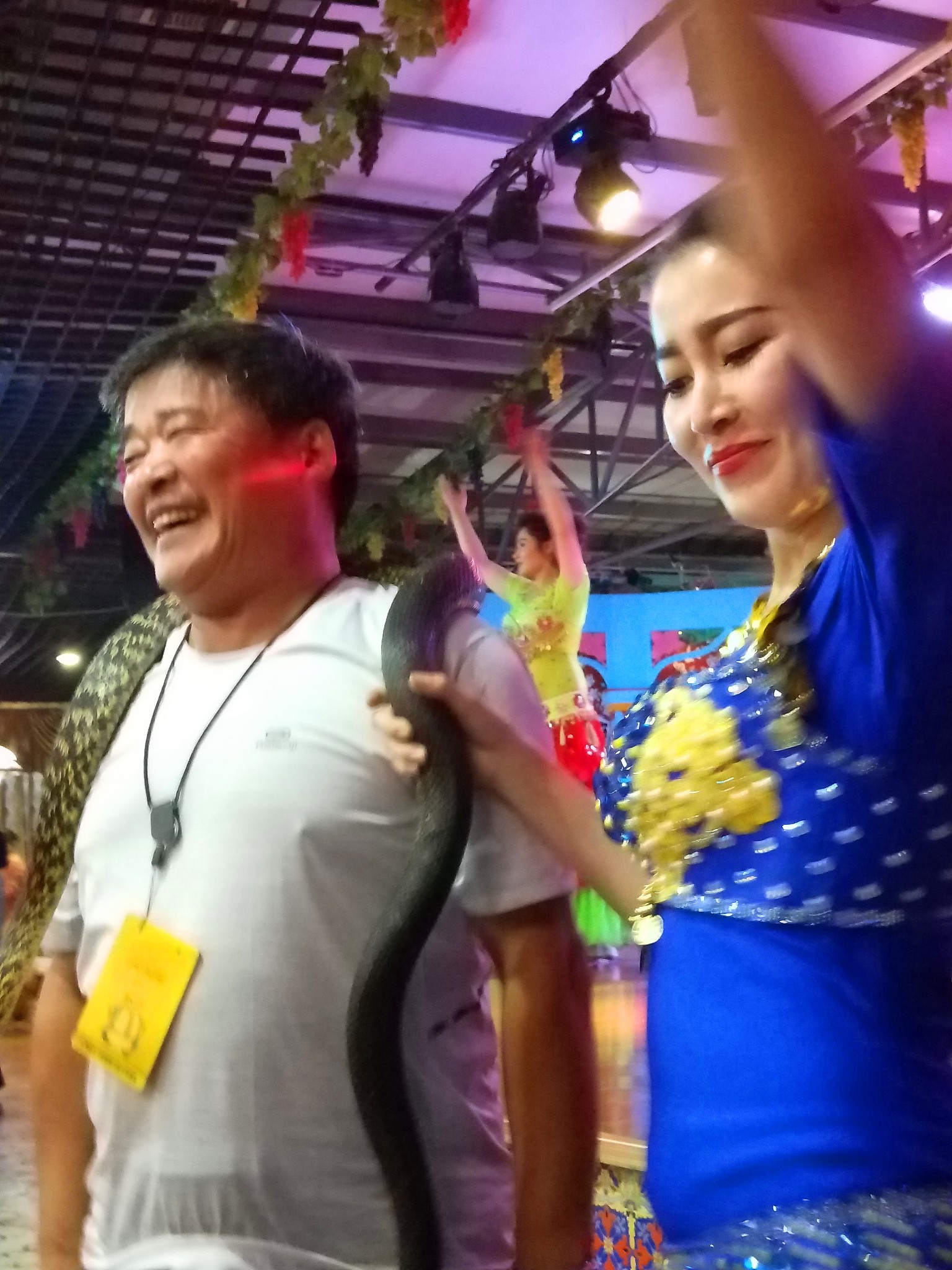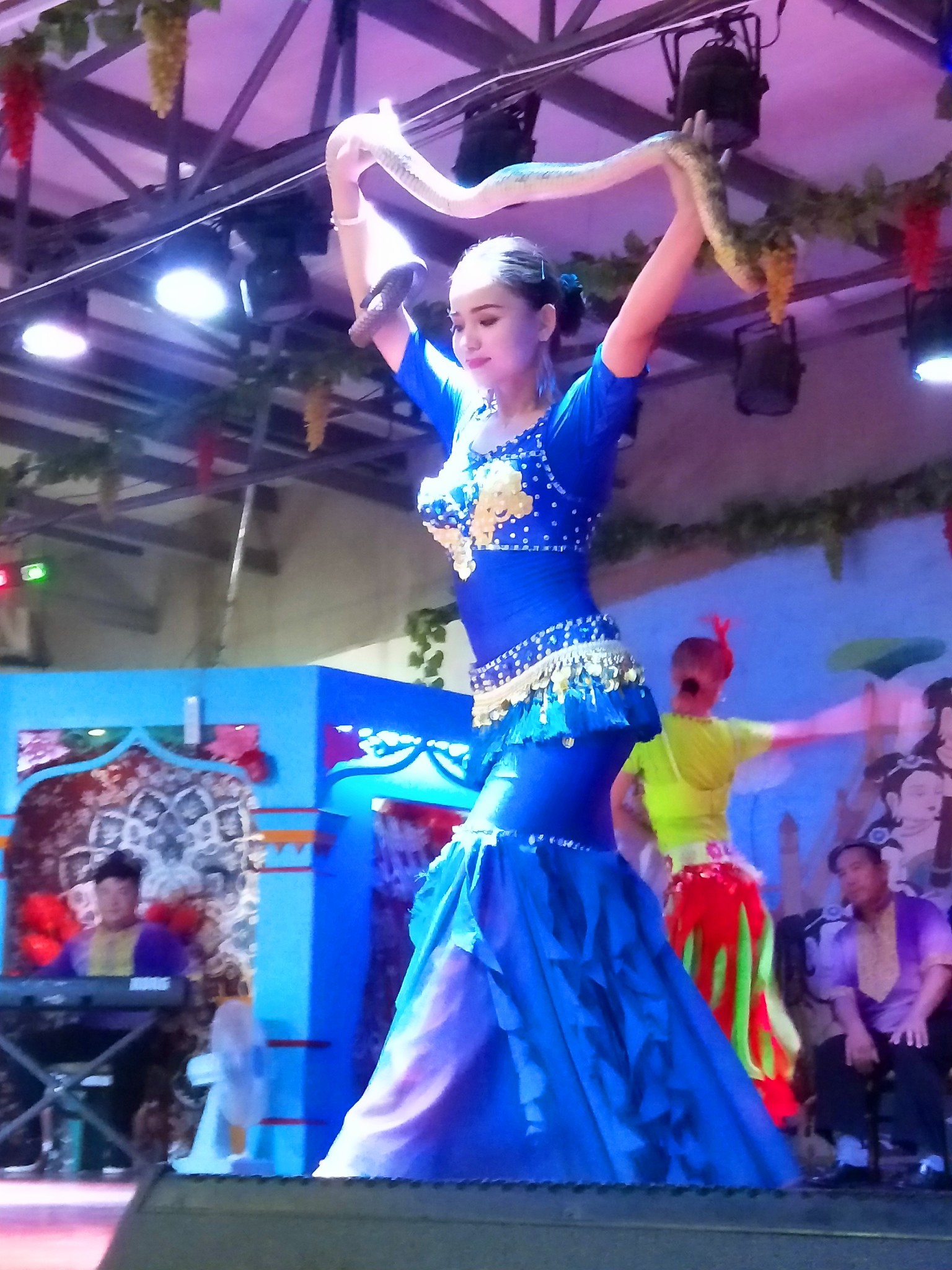 娇媚的舞蛇女孩来到场下与游客近距离接触