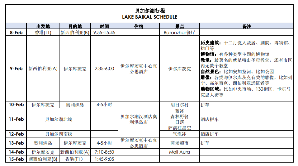 先po个行程,本来这趟旅程还想加入摩尔曼斯克的极光行程,但路程遥远,大家计划腾出来的时间也不多,所以就留到下一次吧,在写这篇游记的时候我正在计划着呢~