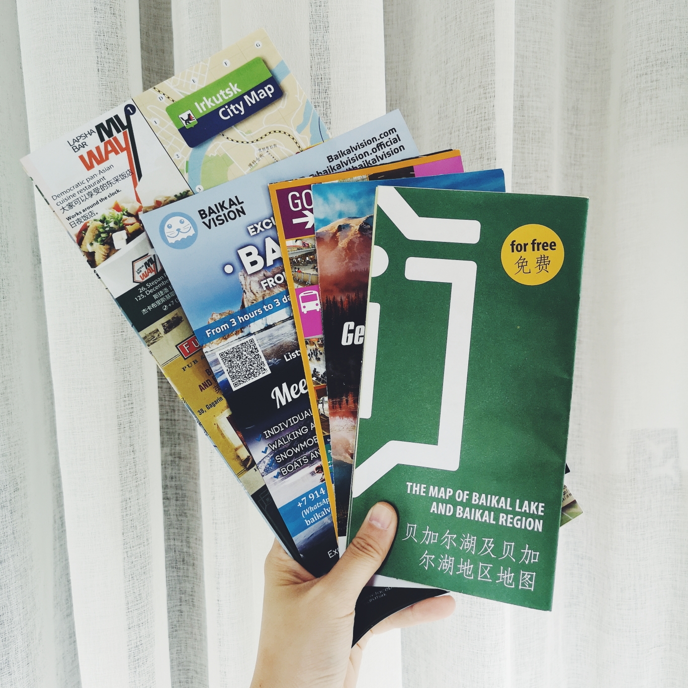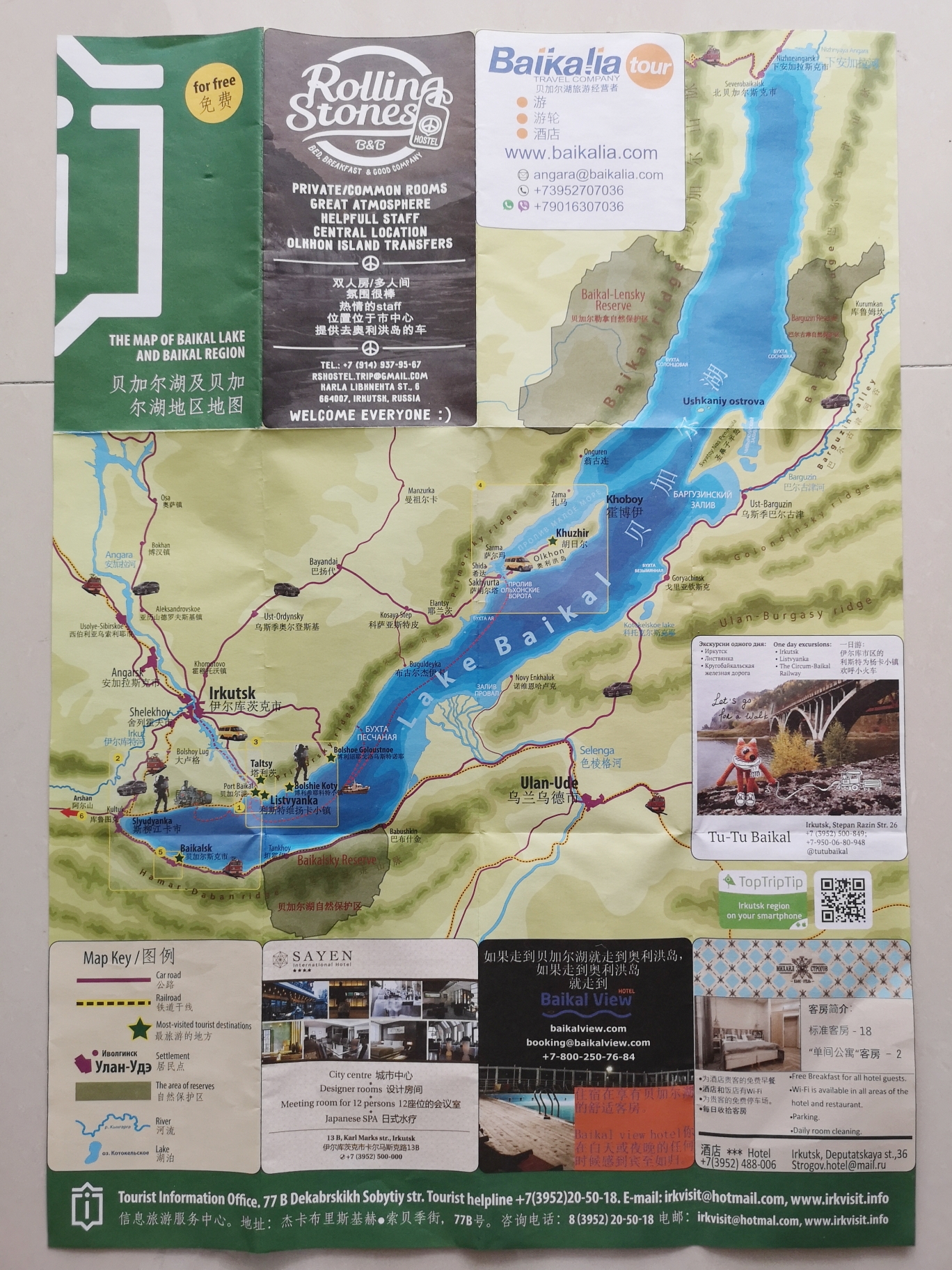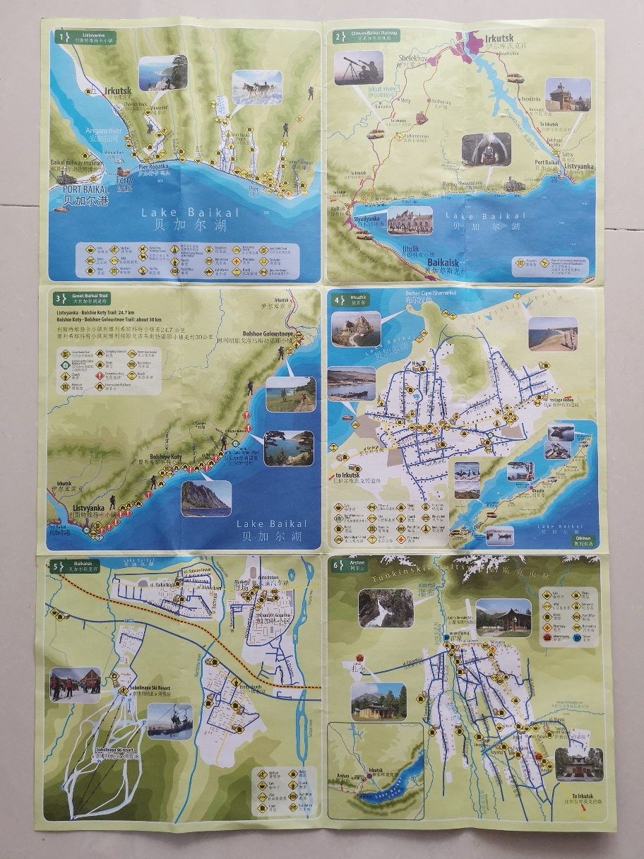 昨天翻箱子的时候发现箱底还有几几张张地图 这是贝加尔湖周边的大部分景点,非常详细,剩下的单子还有滑雪场/雪橇犬/南线北线旅游队/市中心有啥吃的/哪些地方有得爬山的所有信息。