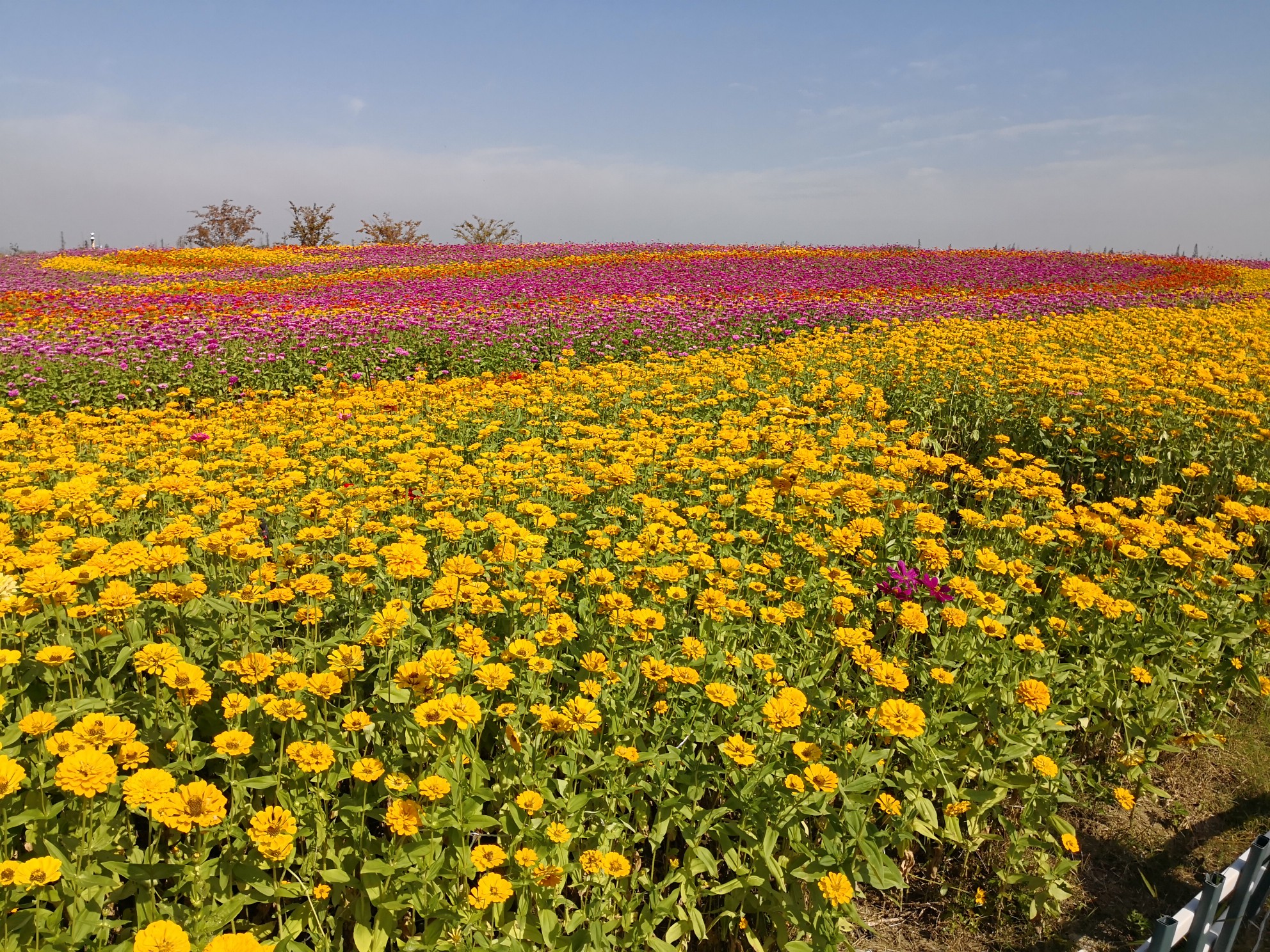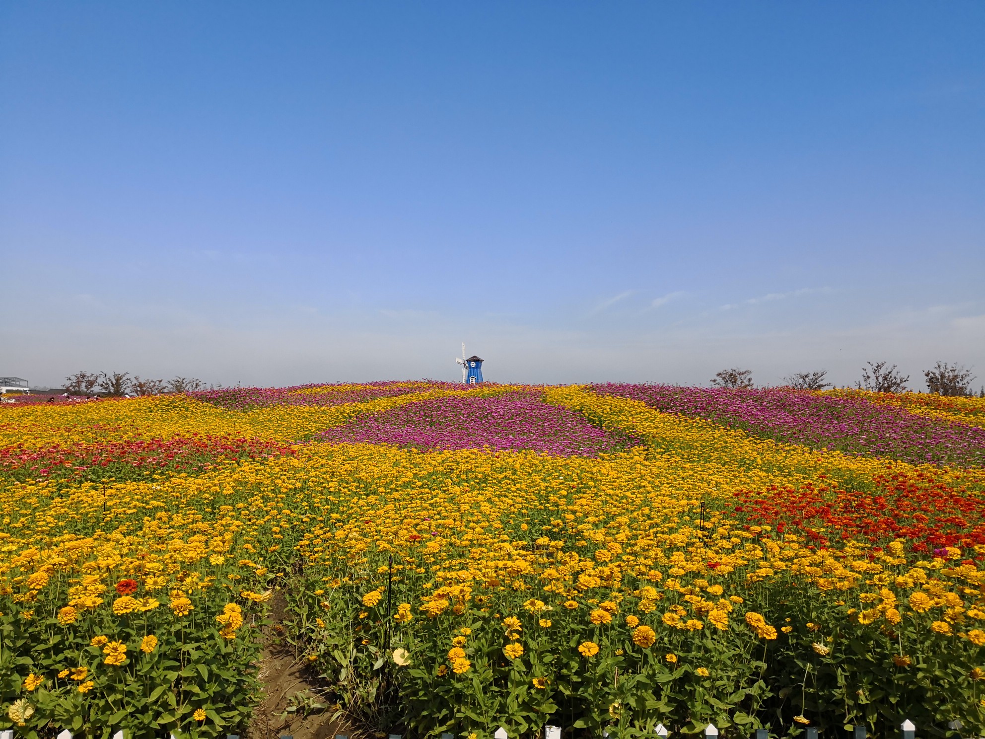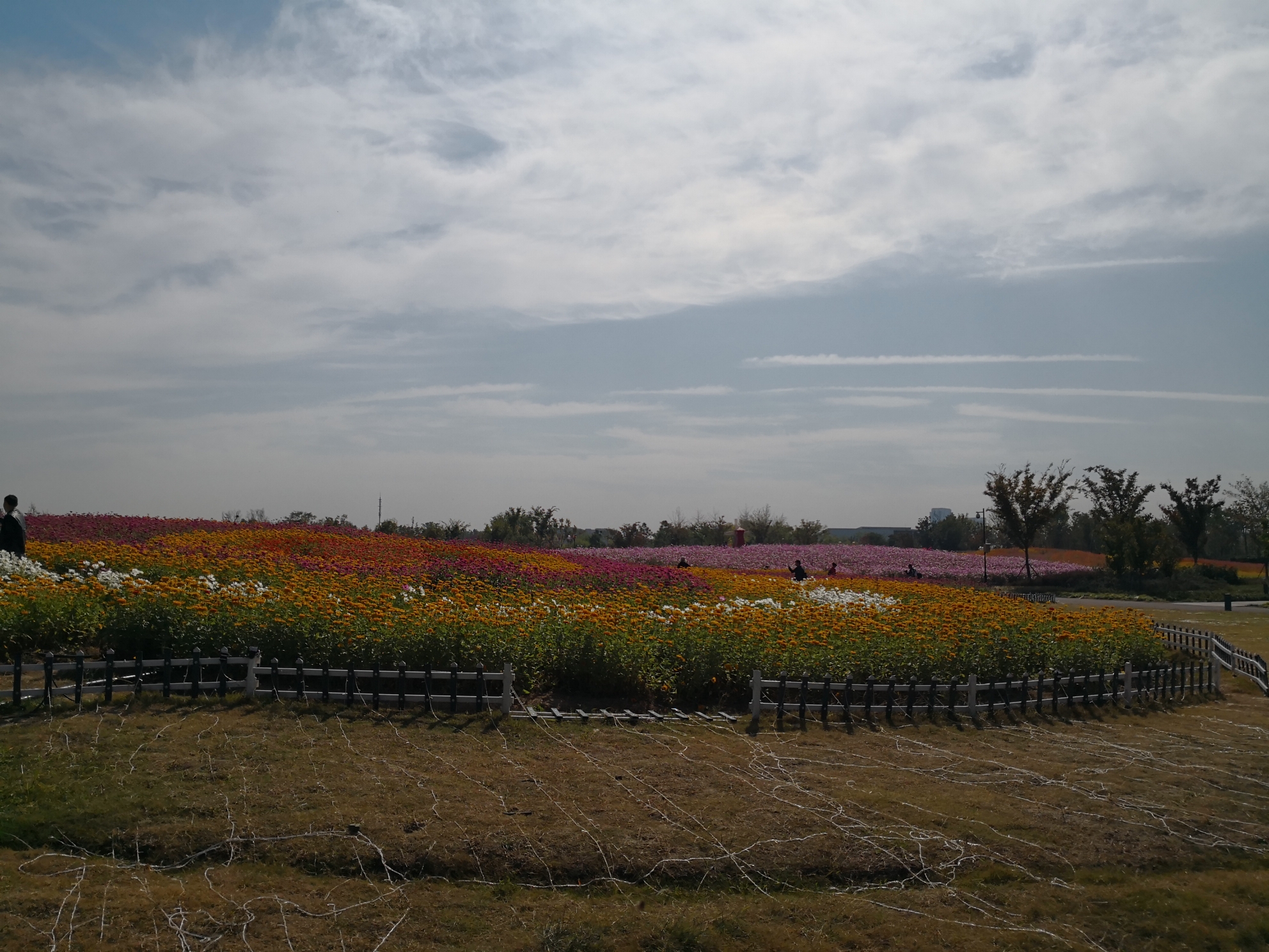 为了避开人流,出行特意选了平日。早上八点半从园区驱车出发,一小时不到就到了。入园要买票,50块钱一张。但也有优惠:60岁以上半票,65岁以上免票。(后来有游客告知,网上怎么怎么链接好友,也可免票云云。)进得园内,果然游客不多。大片的向日葵和菊花,把天空都染得五颜六色。虽然不懂花,但是能感觉到那种恣意怒放的生命活力。因为地方太大,干脆坐游览车(一位10元)走马观花,开车的老哥边开边介绍:“这是南京馆,那是扬州馆......”大家忍不住问道:那苏州馆在哪里?老汉一声长啸:“ 我们苏州馆最大,在湖边的沐春园! ” 于是出了大门,在园博园的最南端找到了沐春园的入口。