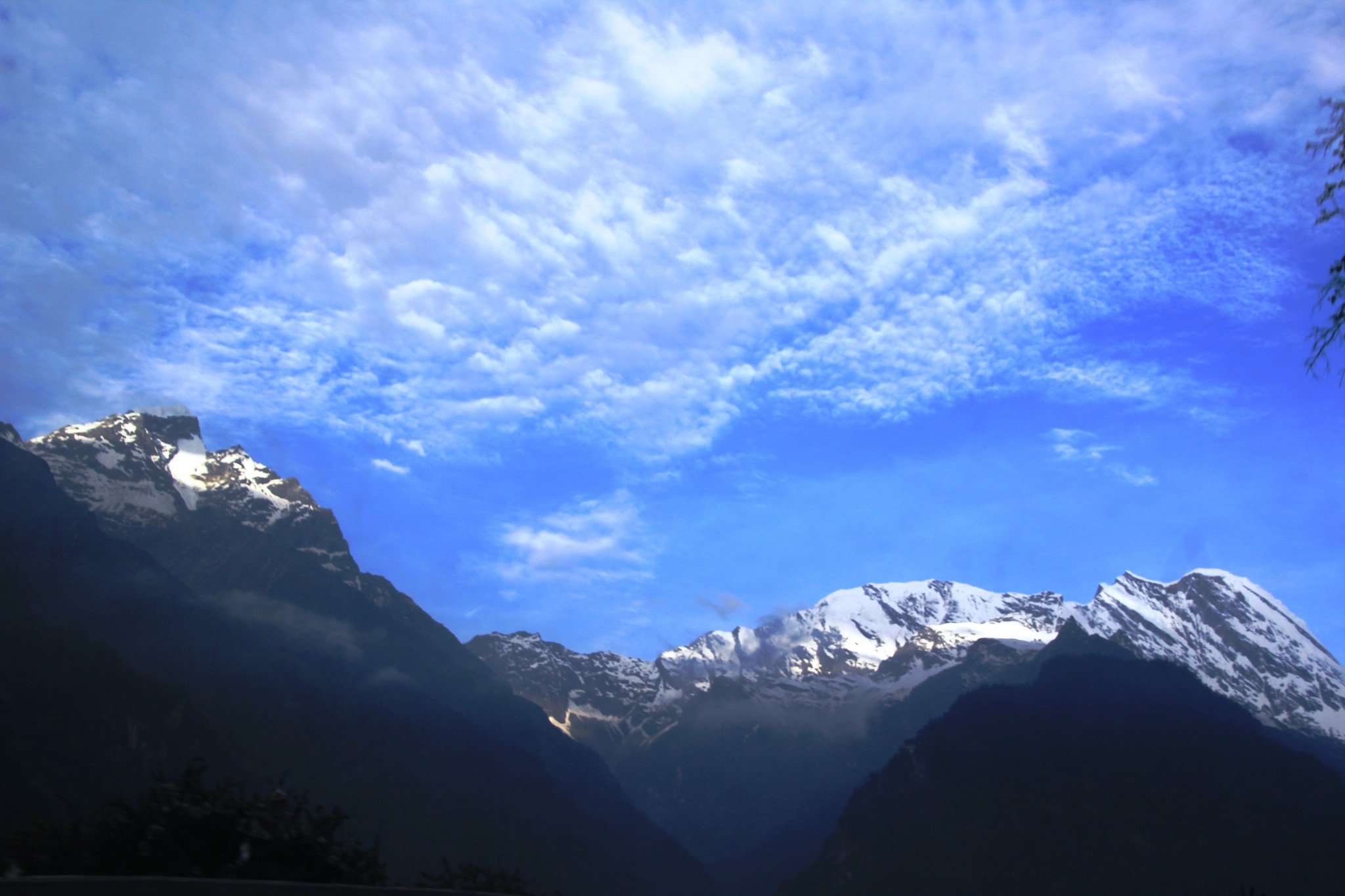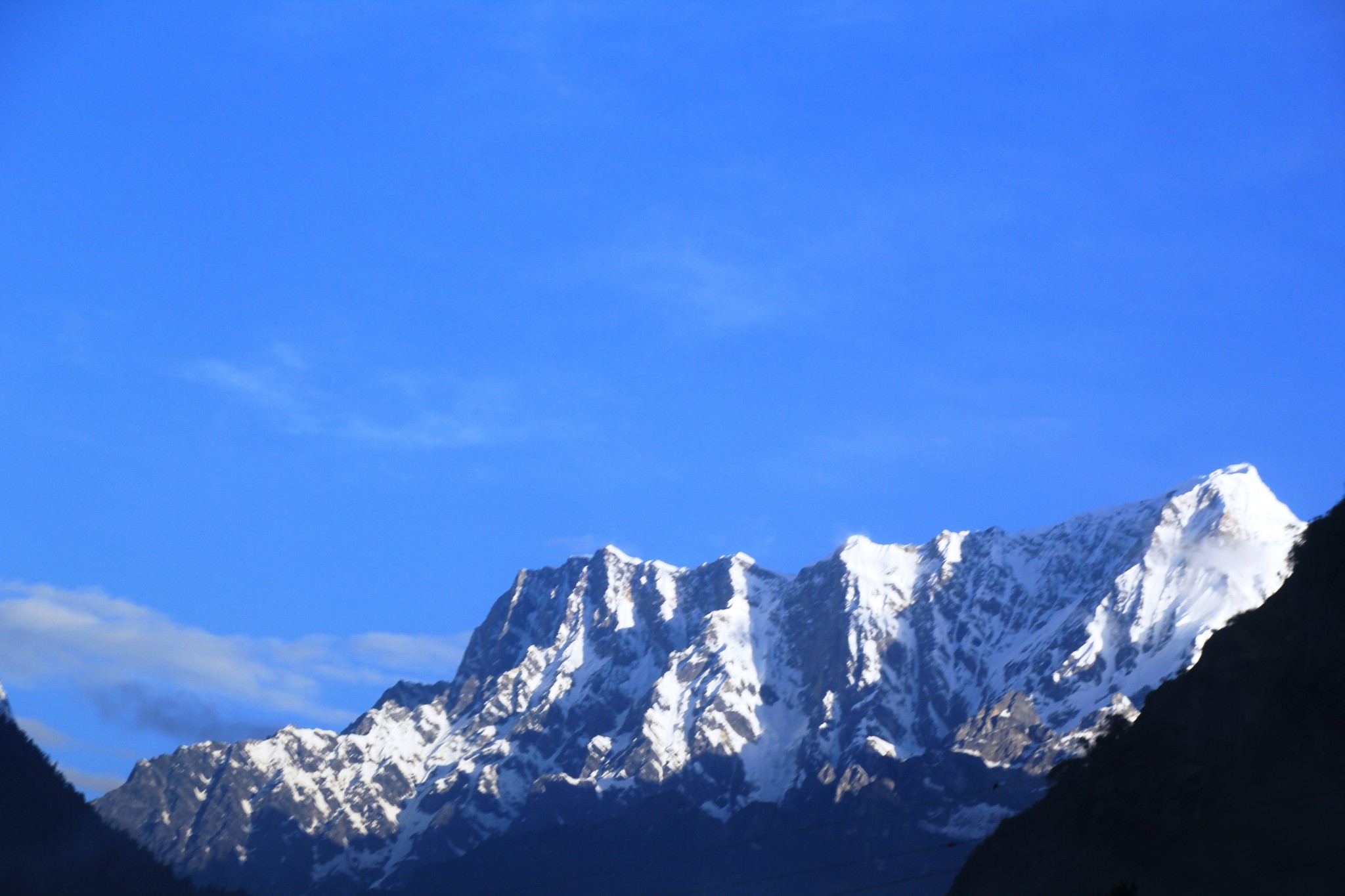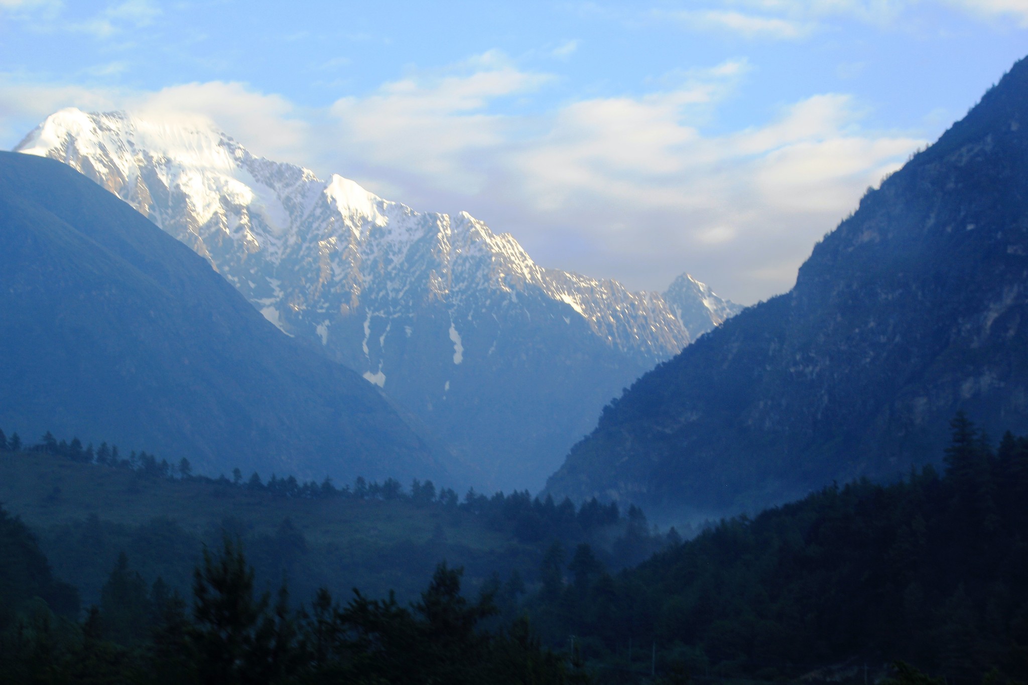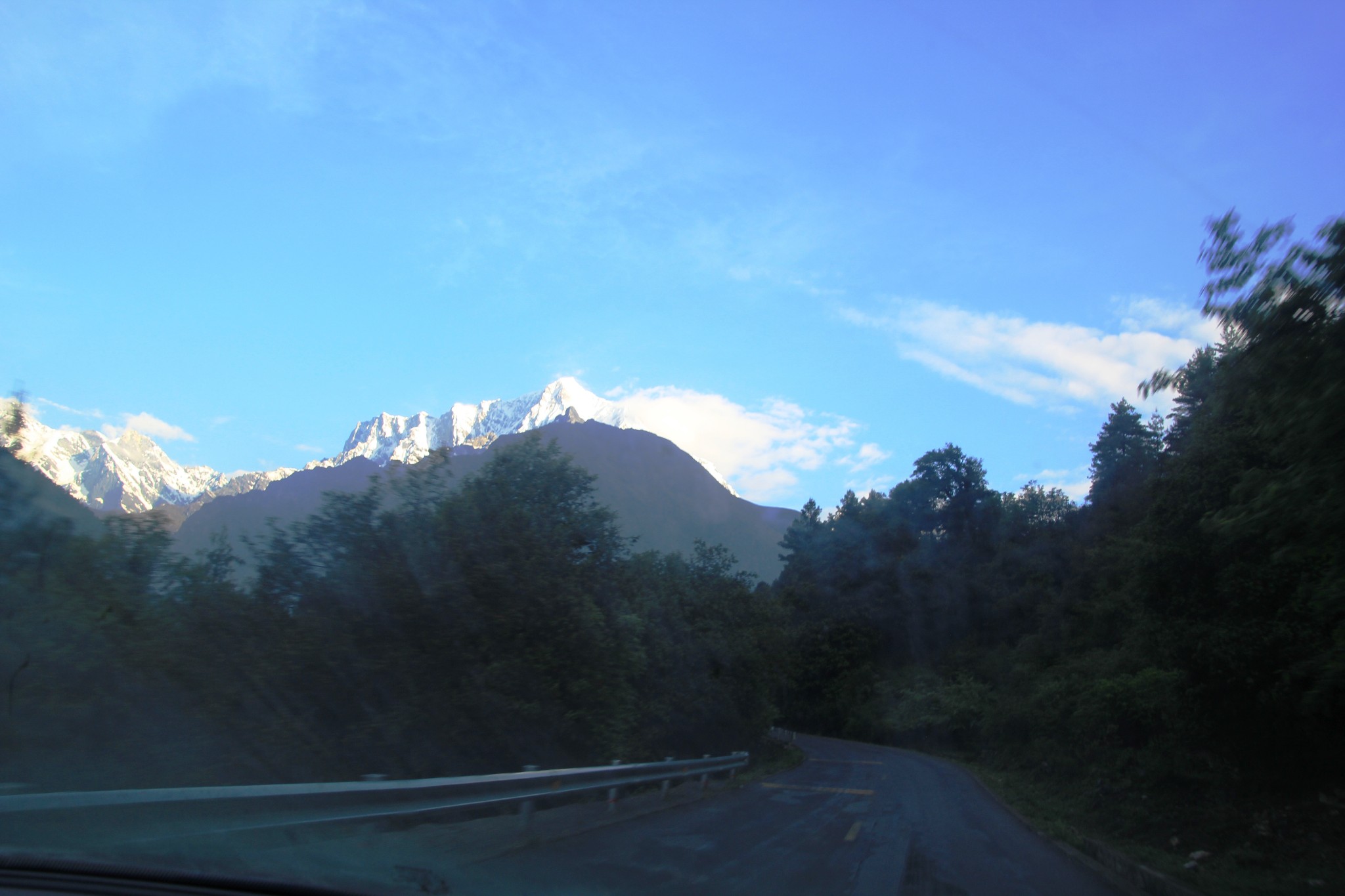行驶在吉隆沟。吉隆沟可说是一山分两界,南北不同天。一山指的便是日吾班巴雪山。