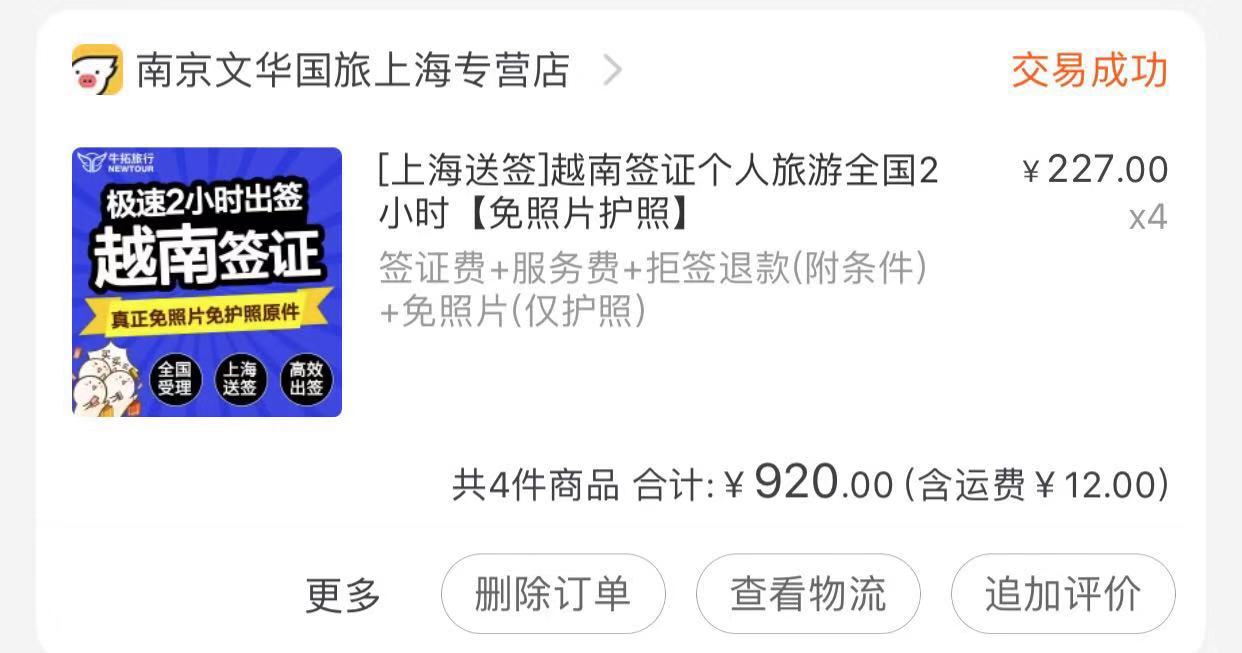 签证:淘宝一键搞定,只需护照扫描件发送至对方邮箱,之后会将纸质签证寄回,费用227/人+12元快递费。