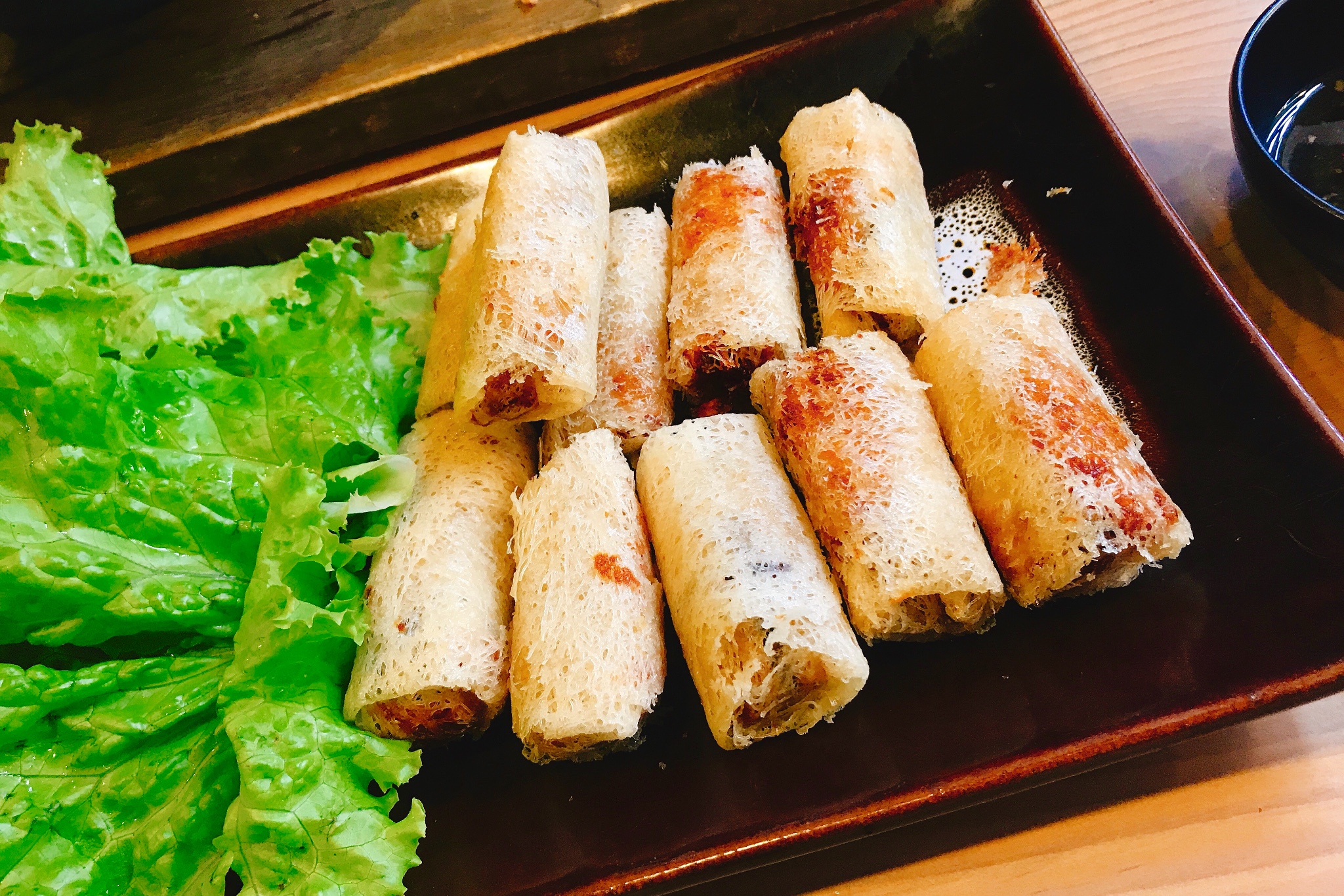 春卷是现炸的,所以端上来还冒着热气,就更脆了,里面馅料也很丰富,应该是猪肉加蔬菜,但吃不出很多蔬菜,也没有全是肉的油腻感,蘸的酸辣汁也很不错。
