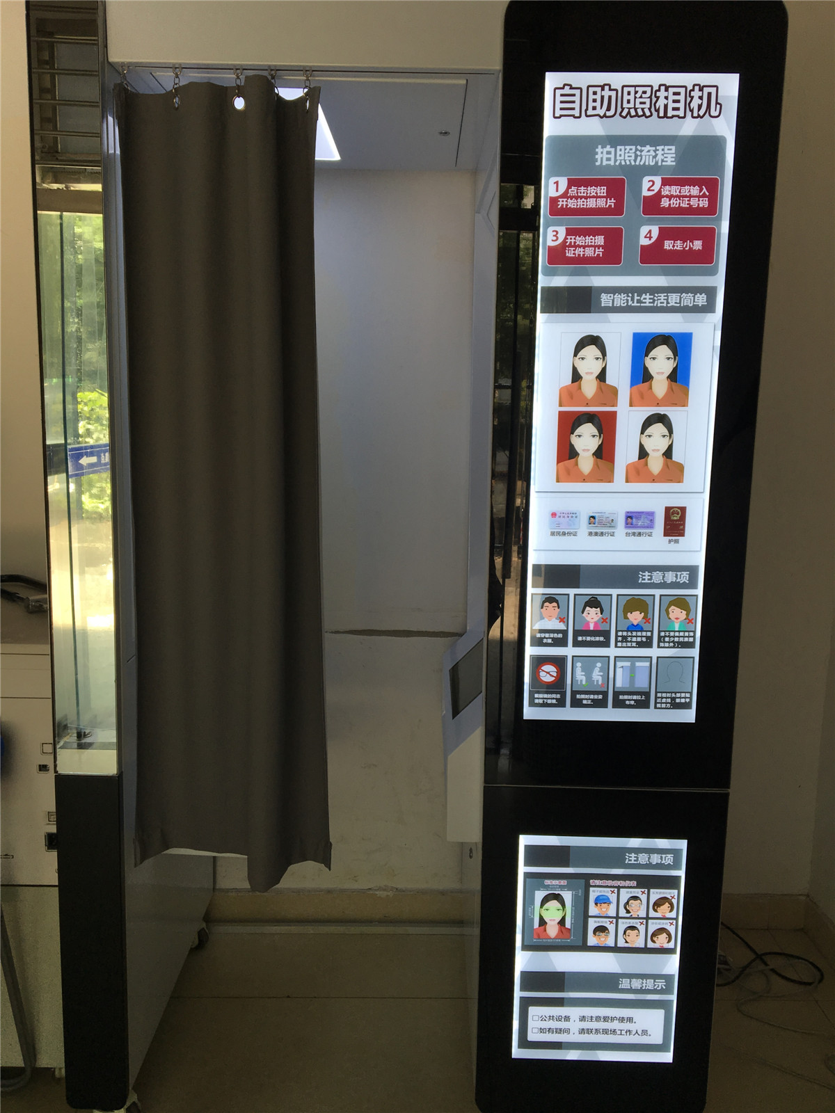 里面有自助照相机,没研究过,另外因为没几个人,我还是选择人工。