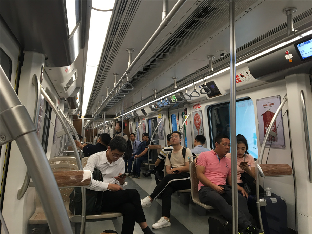 地铁座位和平时的位置有点不同,不是铁板凳,坐起要舒服一些。