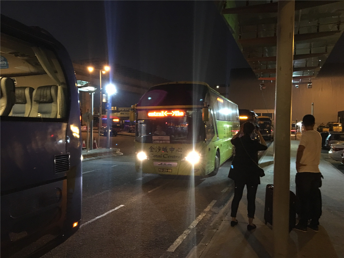 看了很多攻略,知道澳门虽然没有地铁,但最方便的地方在这里,不用打车、坐巴士,大酒店都有接送赌客的免费发财车,灵活运用这个可以去很多地方。顺着酒店专车的牌子往前走。