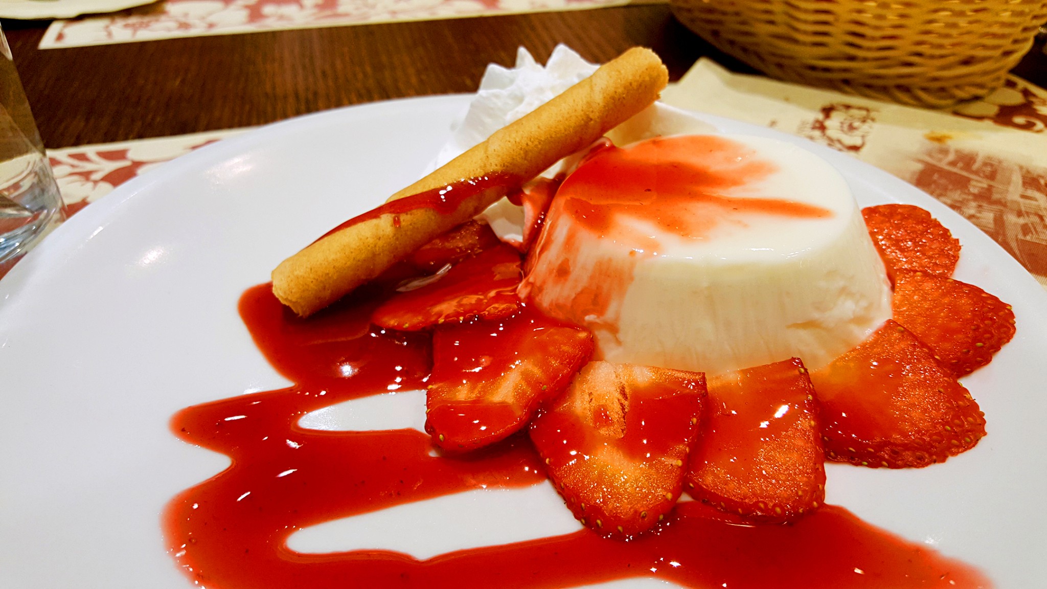 甜品是草莓酱牛奶布丁,草莓很甜,布丁味道浓郁。