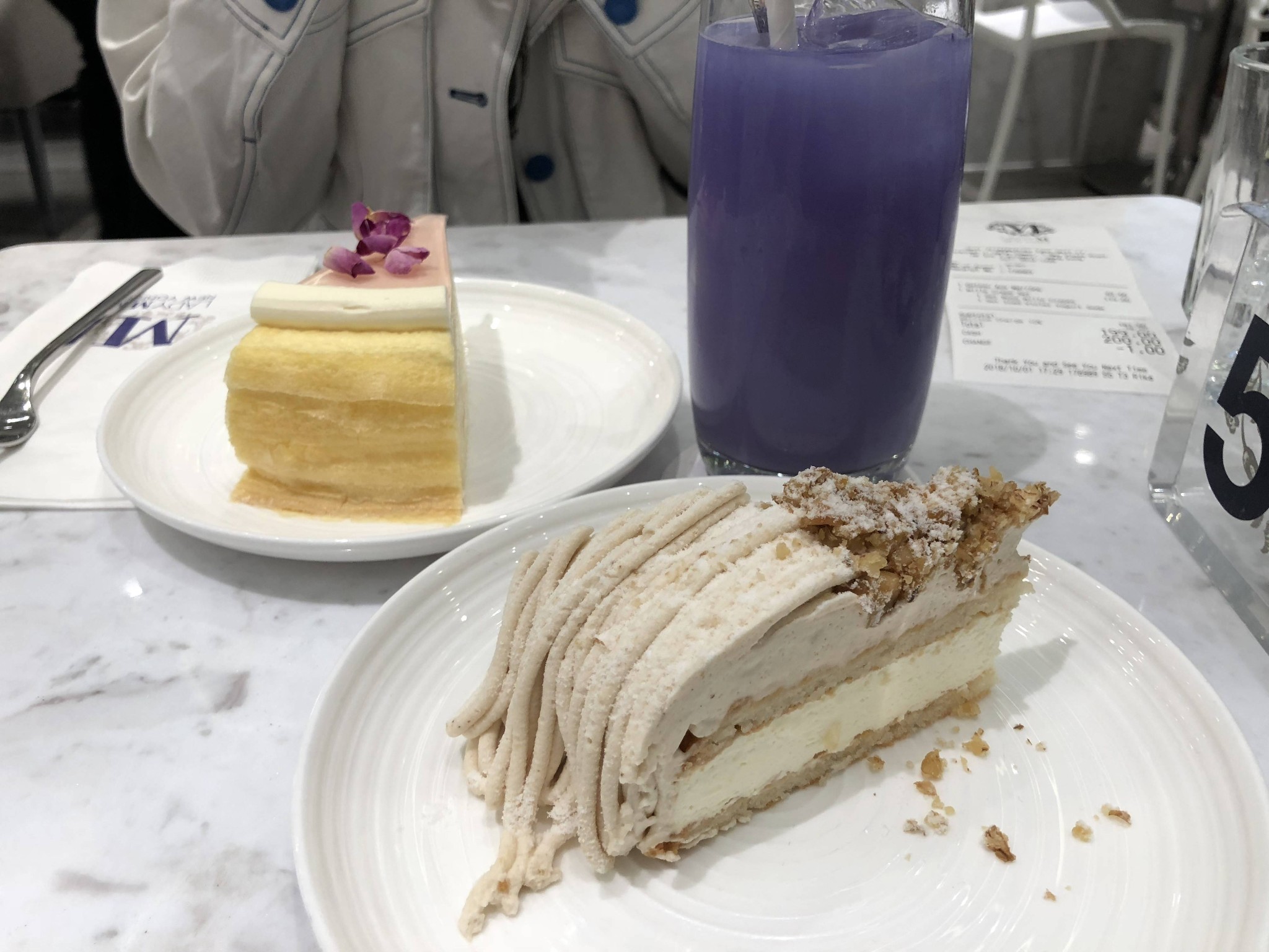 排队的人很多,因为大部分都是要转机的都面带焦虑,本来甜品就应该是一种放松状态下吃才会更有幸福感。外加吃的时间也不会太多,搞不好都要囫囵吞下。所以在这个氛围下,首先就会扣分。当然我的时间充裕,外加也不在机场购物,所以还是打算认真品尝。另外这家蛋糕可以外带也可以带上飞机。