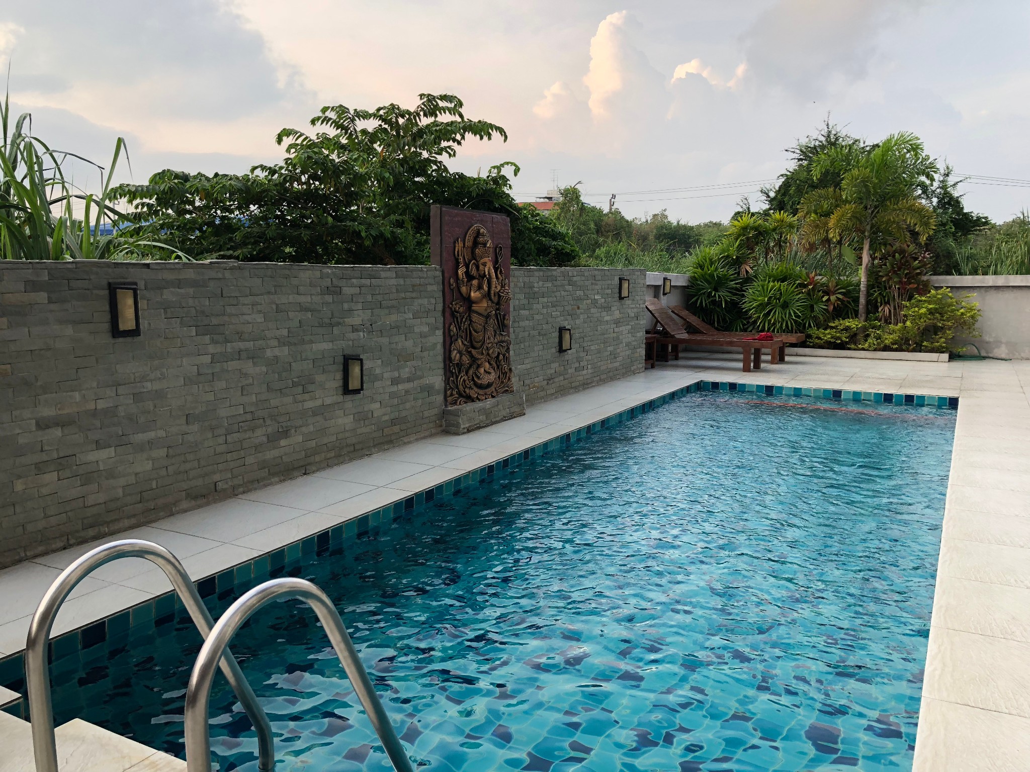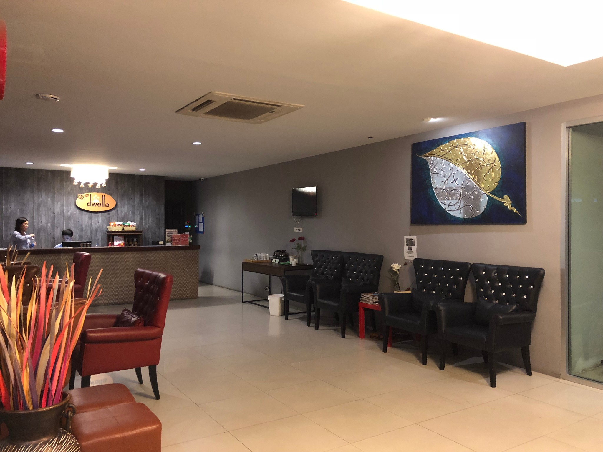 考虑到仅仅落个脚,酒店订的是机场附近的德维拉素万那普酒店,距机场车程15分钟。酒店在一条小巷子里,对面是家小工厂,周围是农田。