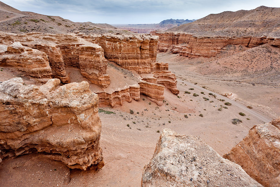 恰仑峡谷位于阿拉木图以东215公里的恰伦国家公园内,是世界第二大峡谷, 经过的恰仑河多年的冲刷而形成今天的模样, 恰仑河至今仍在谷底流淌。恰仑峡谷延伸近80公里长,30至100多米深,恰仑峡谷属于风化岩石地貌,类似于塔克拉玛干沙漠的魔鬼城,不同颜色的岩石代表峡谷经过不同阶段的大自然创造及洗礼。这些造型独特而又姿态各异的岩石,让人引发无限的想像空间,它们有的像人头,有的像动物,有的像城堡,有些岩石的表面布满绿色、红竭色等不同颜色的植物,衬着清彻的蓝天,构成一幅幅斑斓瑰丽的图画,景色十分壮观。