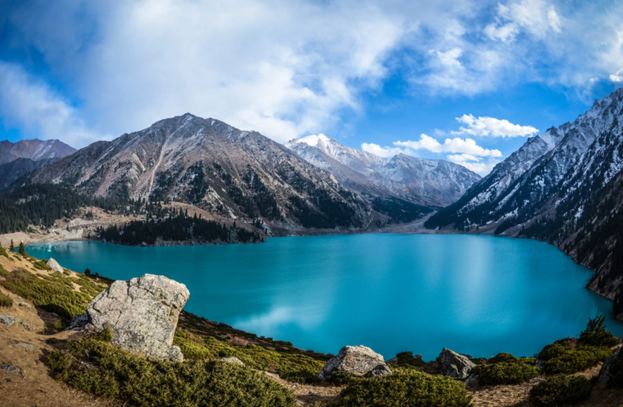 大阿拉木图湖是位于哈萨克斯坦国南部城市阿拉木图的一个湖泊,被誉为“阿拉木图的明珠”,距离阿拉木图15公里,海拔2511米,长1.6公里,宽1公里,深40米。湖四周由风景如画的覆盖天山云杉,白杨云杉群峰和冰川所环抱。宝石蓝般颜色的湖面与周边雪山冰凌相映,美不胜收。每逢春季和夏季,阳光直射湖面,波光粼粼,为翡翠色的湖水增添色彩,使游客不禁为这浓郁的画面深深陶醉。而秋季,此处更是美不胜收,湖水变得更加清澈澄净,其颜色会随着光影与周边的景物而不断变幻。
