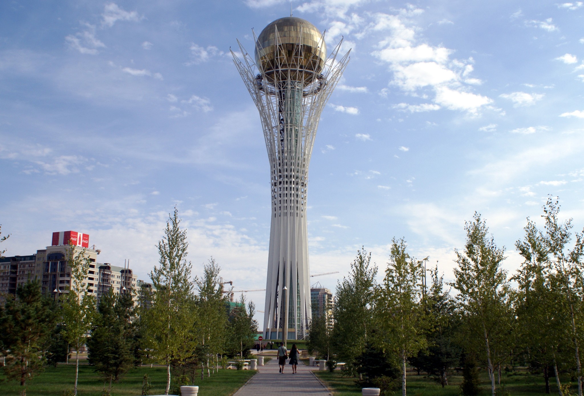 巴伊杰列克塔位于首都阿斯塔纳市中心,是这座城市的象征。巴伊杰列克塔是一座纪念塔兼观景塔,设计灵感来自哈萨克族的神话故事。故事讲述了一棵神秘的生命之树和一只幸福的魔力鸟,这只鸟每年会在这棵树的树杈之间下一个蛋。塔高约105米,上面有一个直径22米的黄色球体,分别象征着神树和蛋,在这个黄色球体中有一个观景台,可以俯瞰整座城市,观景台高97米,象征着1997年哈萨克斯坦迁都到阿斯塔纳。
