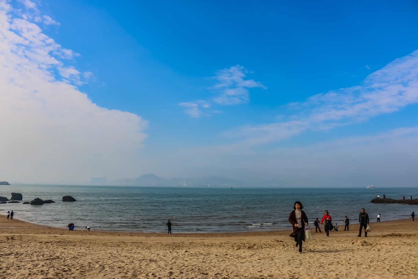 虽然这里没有黄厝的椰风摇曳,没有黄厝的渔船归港,但是这里有碧海、蓝天、金色的沙滩,虽不是“水清沙幼”,但潮涨的涛声依旧响亮,潮落的海水吐纳深深