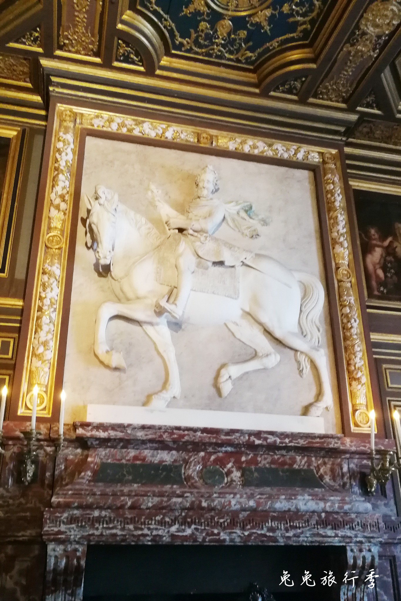 这里是圣路易厅的第二个房间,直至十六世纪前,这里都被用作国王寝宫。在波旁王朝时期作为国王的前厅,并以这幅“在马背上的亨利四世”的大理石浮雕而闻名。 由马蒂厄·雅克(Matthieu Jacquet)于1600年雕刻而成。
