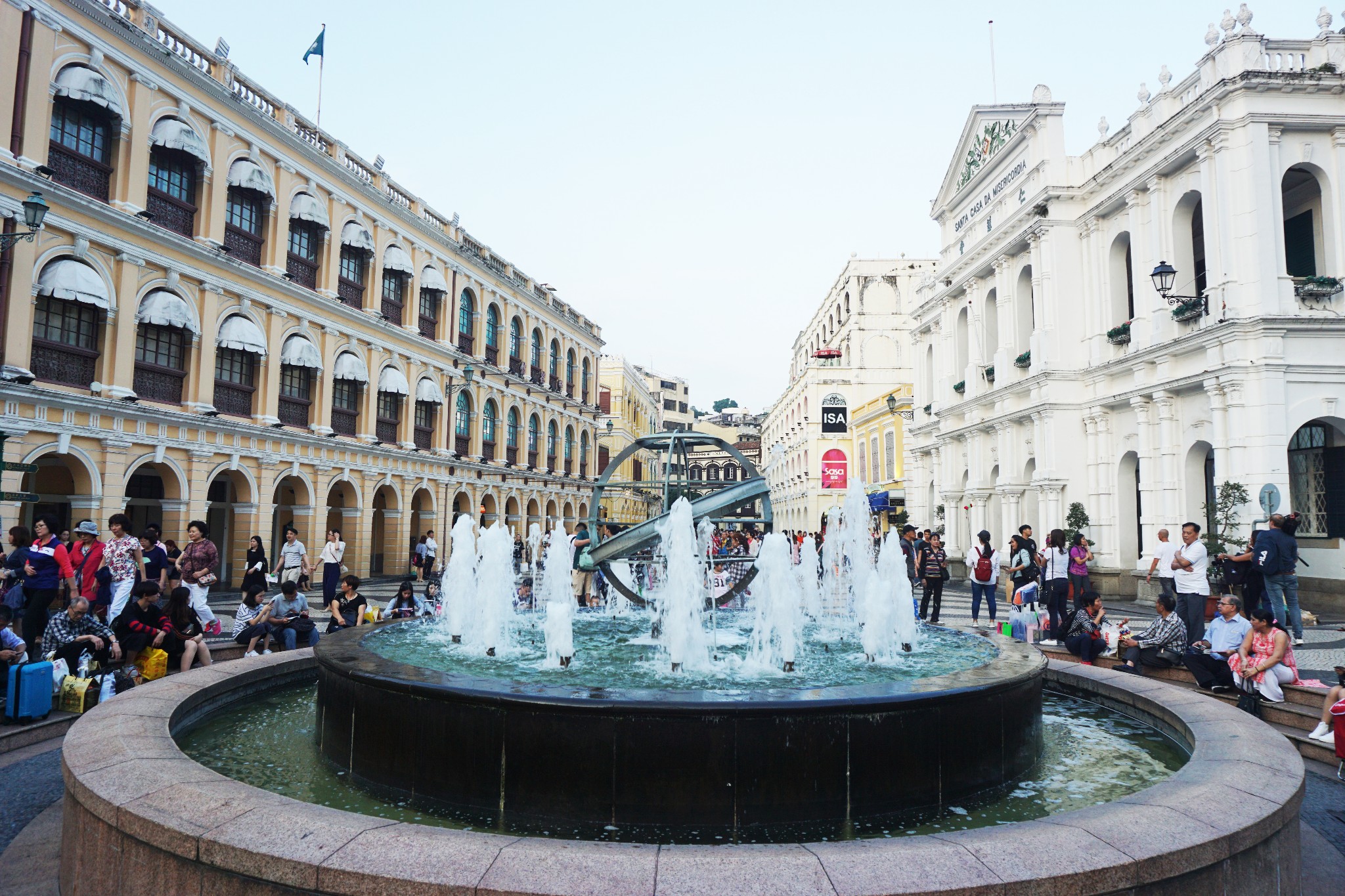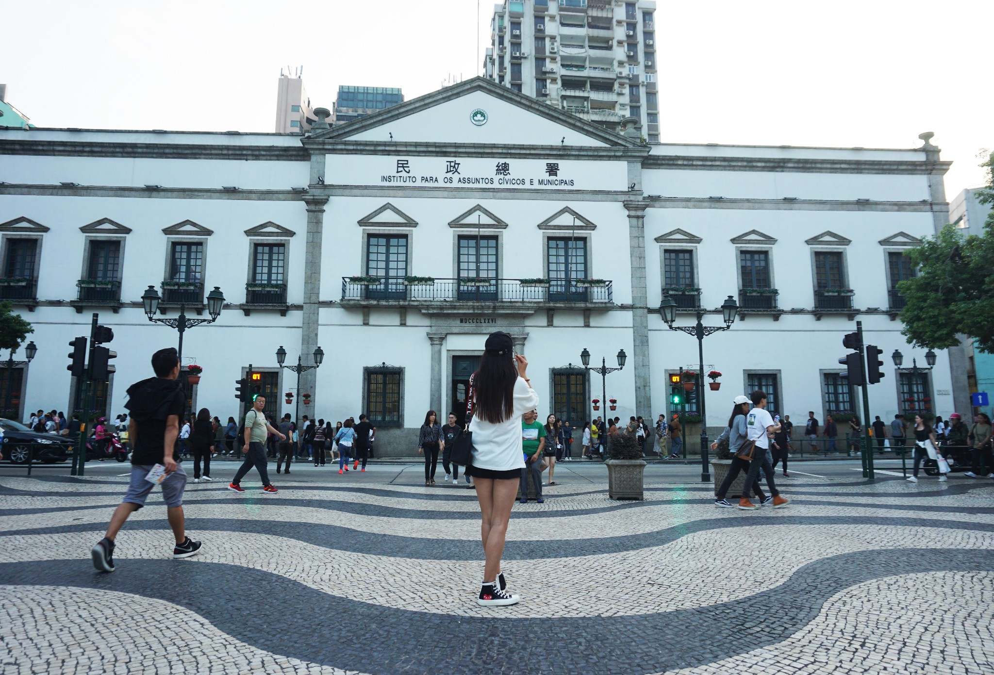 办理了入住,放下行李,我们便前往新马路,此时已经下午五点多了,澳门博物馆6点关门,感觉有些赶不上了,所以就没有着急,一路沿着新马路朝大三巴方向走过去,经过民政总署大楼和议事厅前地广场,聚集了很多游客,周围建筑都很有特色,适合拍照