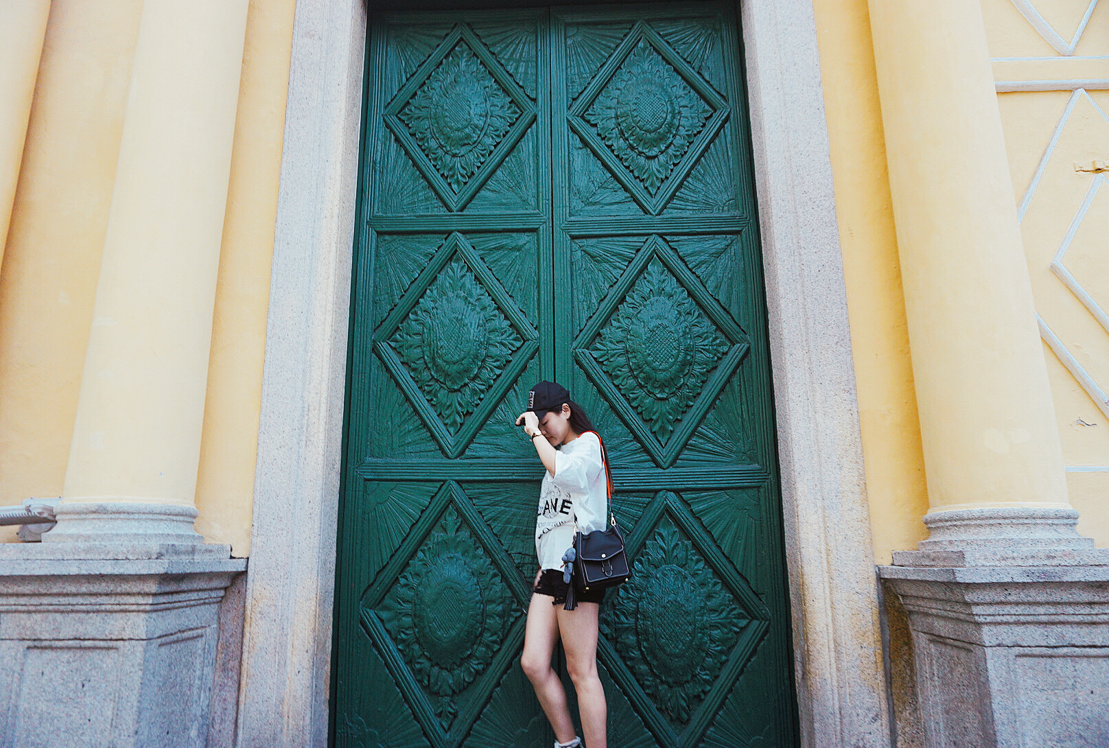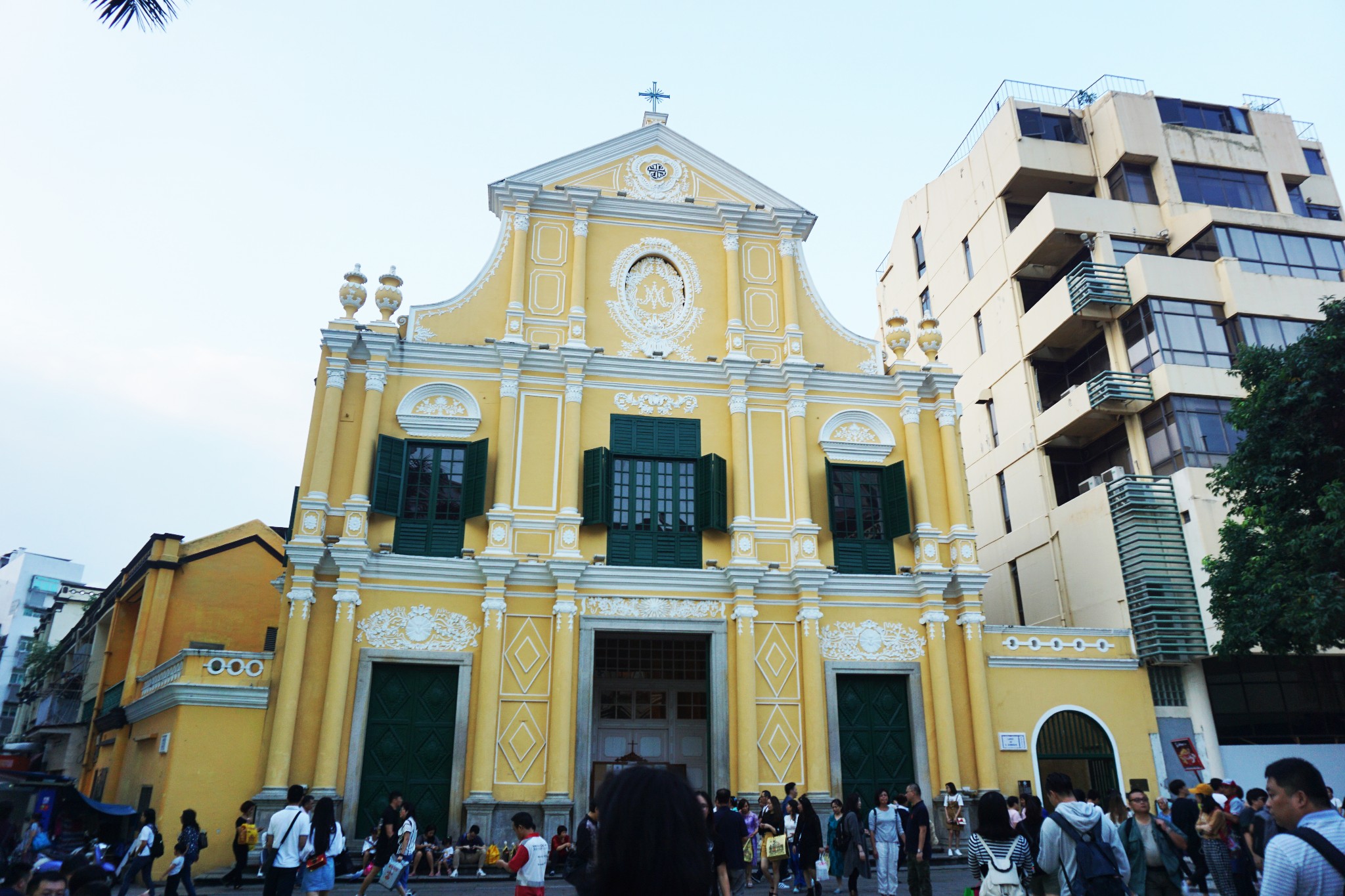 往前走便到了玫瑰圣母堂,始建于1587年,是西班牙天主教的圣多明我会教士初到澳门时设立的,至今已有四百年的历史。教堂于1828年重修,今天壮观的规模即源于此为如今的模样。绿色的门窗,加上浅黄色的墙壁,以及雕刻的欧式花纹,非常的漂亮