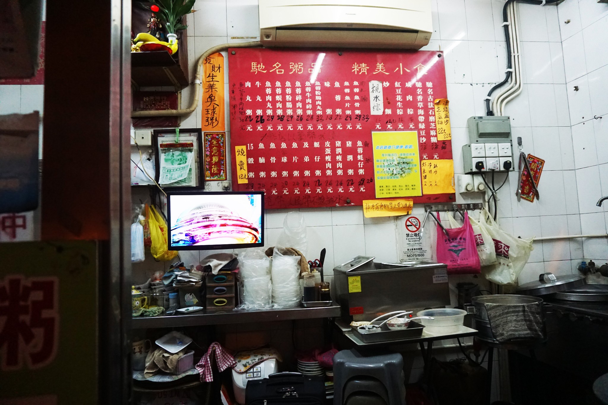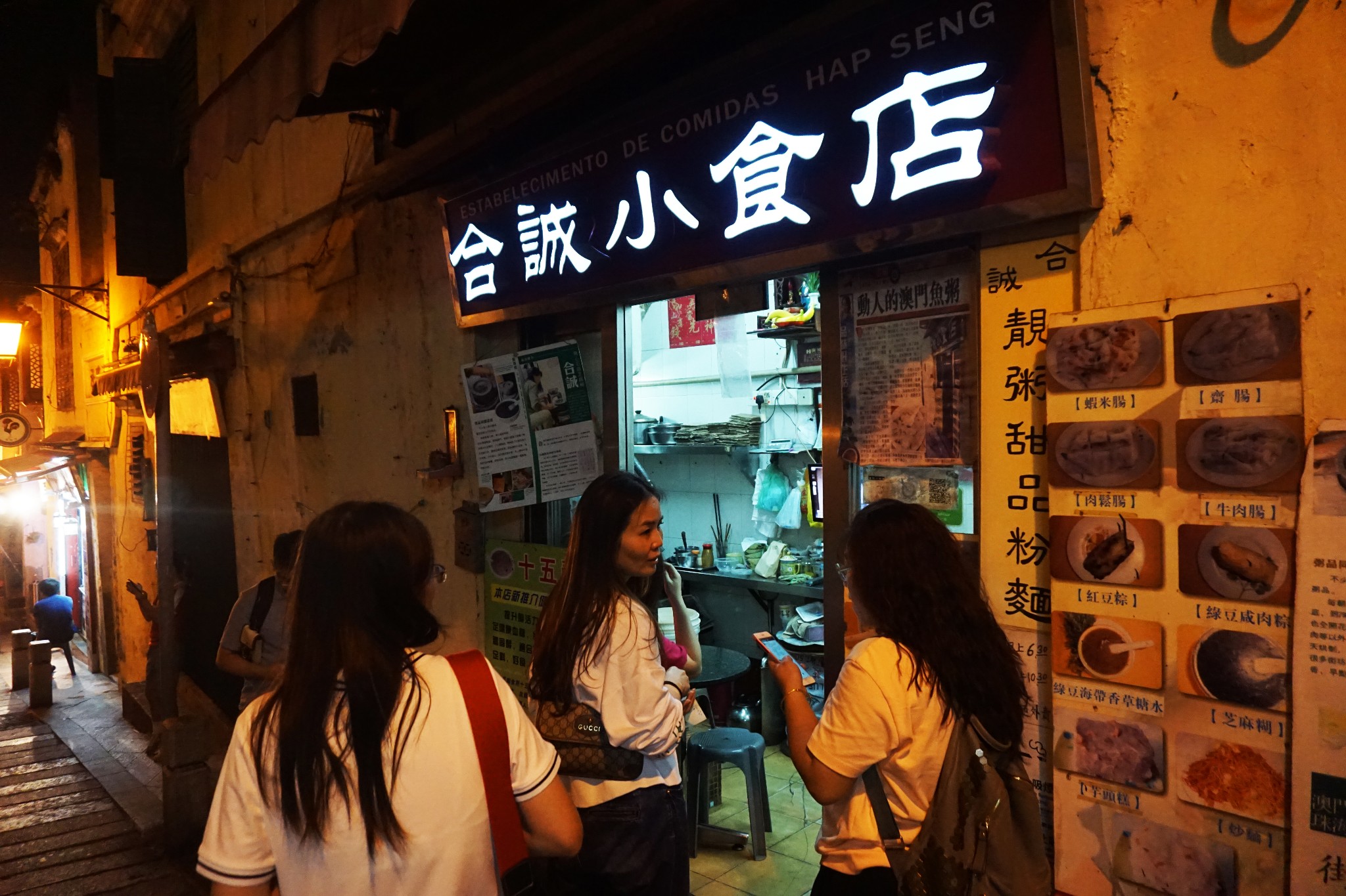 店铺一共大概只有五六平米的样子,只有两三个小小的桌子供顾客在店内食用。餐具也是比较破旧的那种。合诚小食店是很具澳门特色的一家小店。喝上一碗粥很暖胃呀,已经感觉饱了。但是!继续觅食!