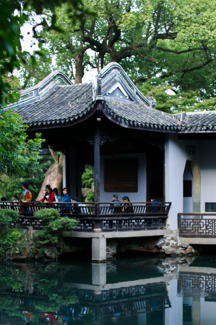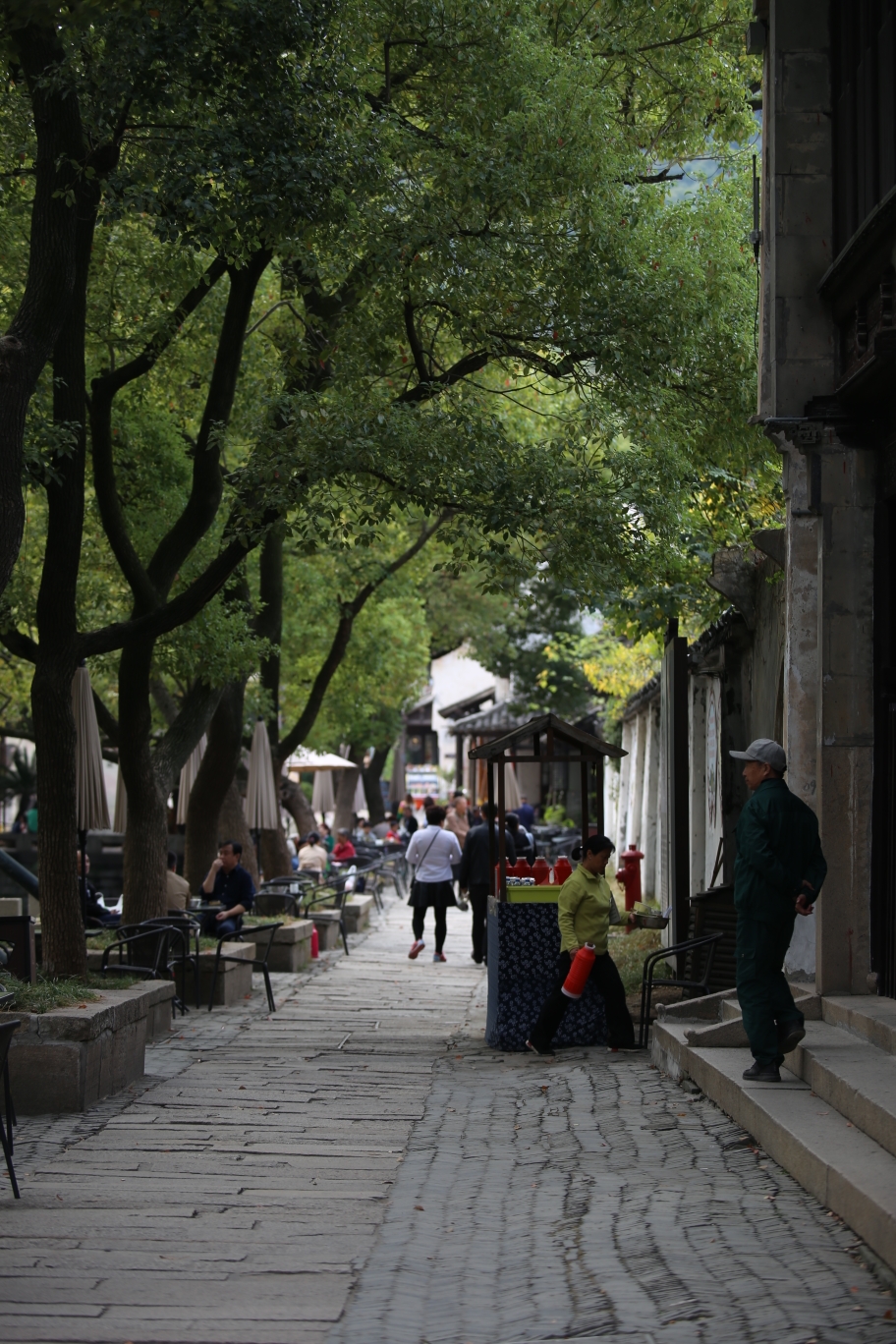 走在惠山古镇的路面上,周围绿树郁郁葱葱,流水潺潺,忽然觉得人们非常悠闲,因为正好是周六,许多人们在树下聊天,喝茶,打牌,嗑瓜子。远离尘世。