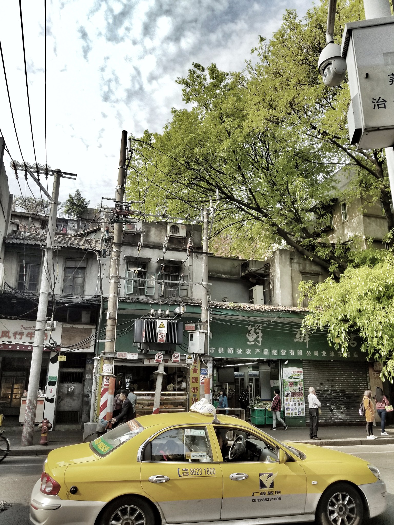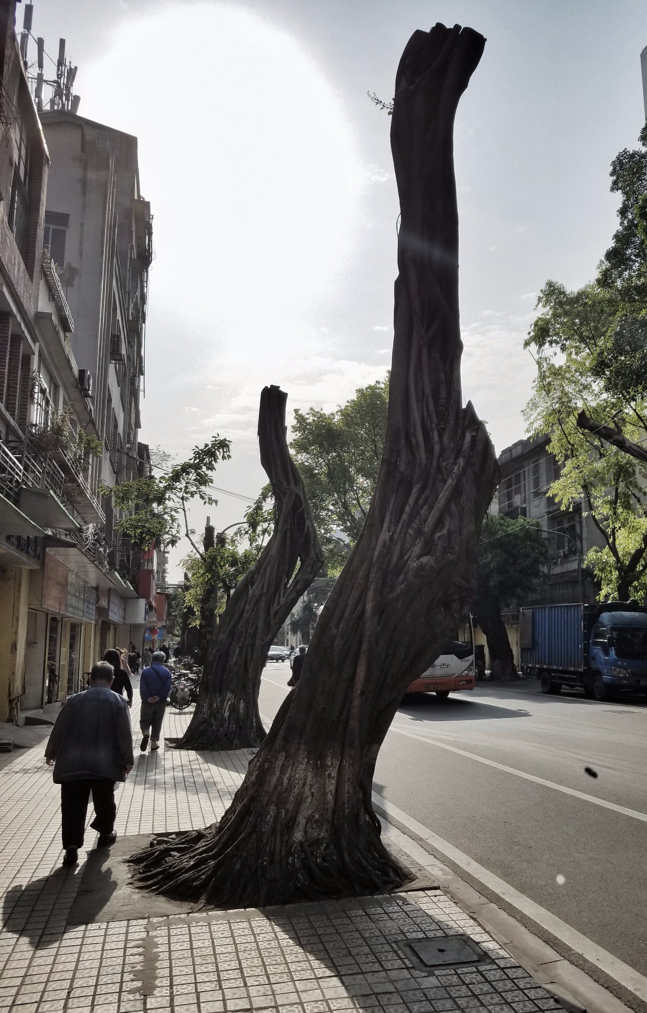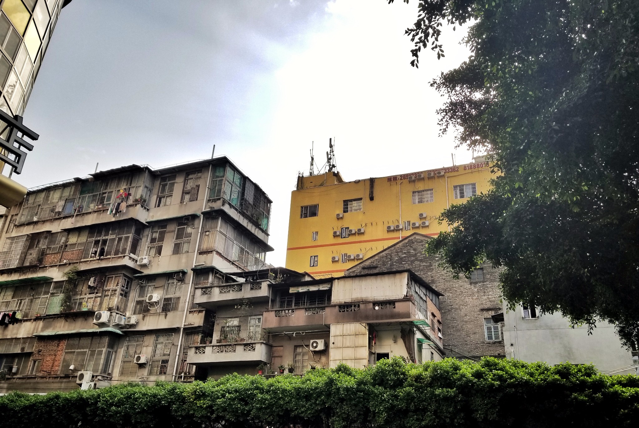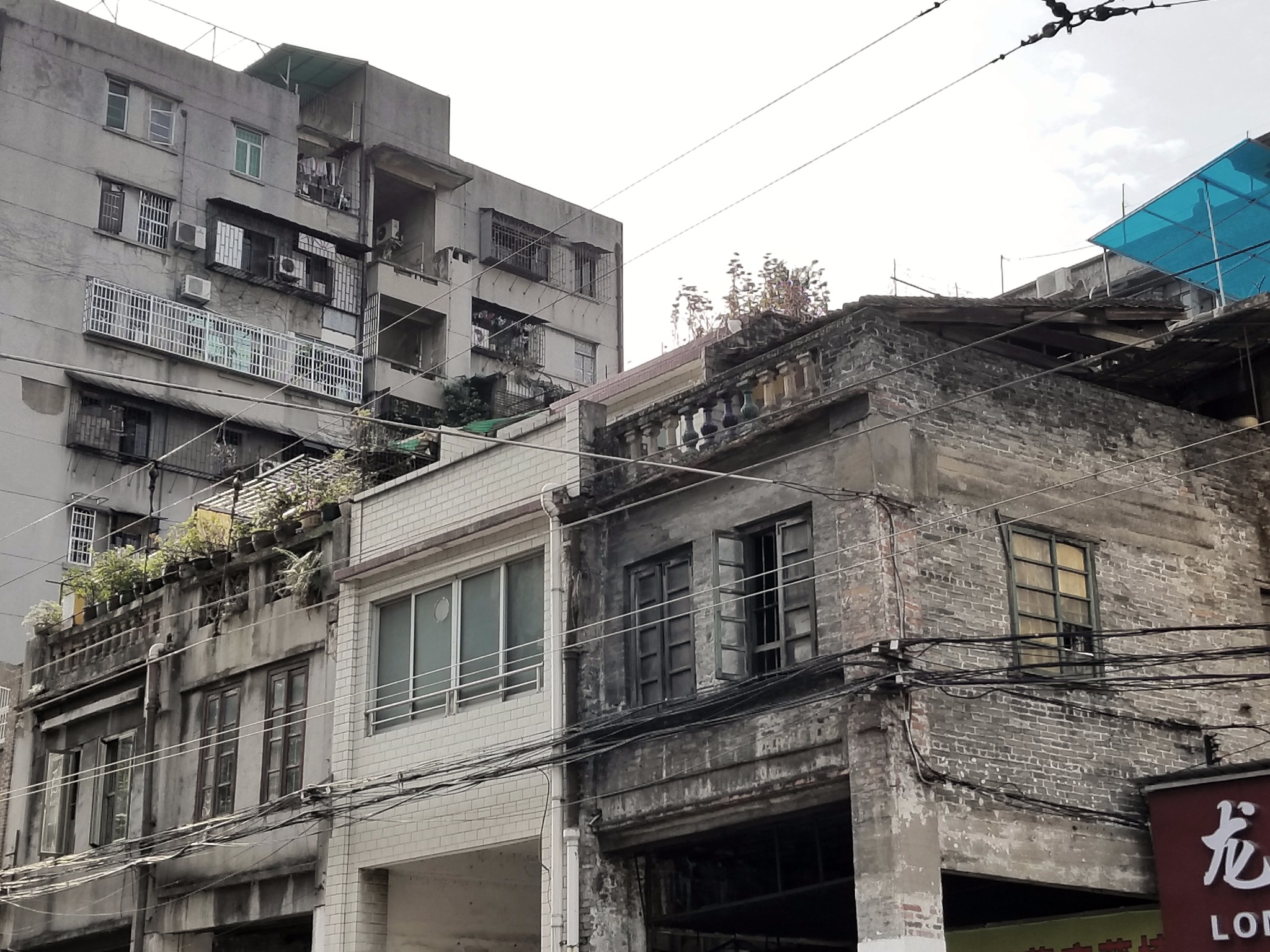 这段街道都是广州的老城区,斑驳的建筑,陈年的老树,破旧的弄堂,点缀以亮眼的招牌和鲜艳的花草,看着既冲突又和谐,景色超出那些故意做旧的旅游街道,很有自己的韵味。