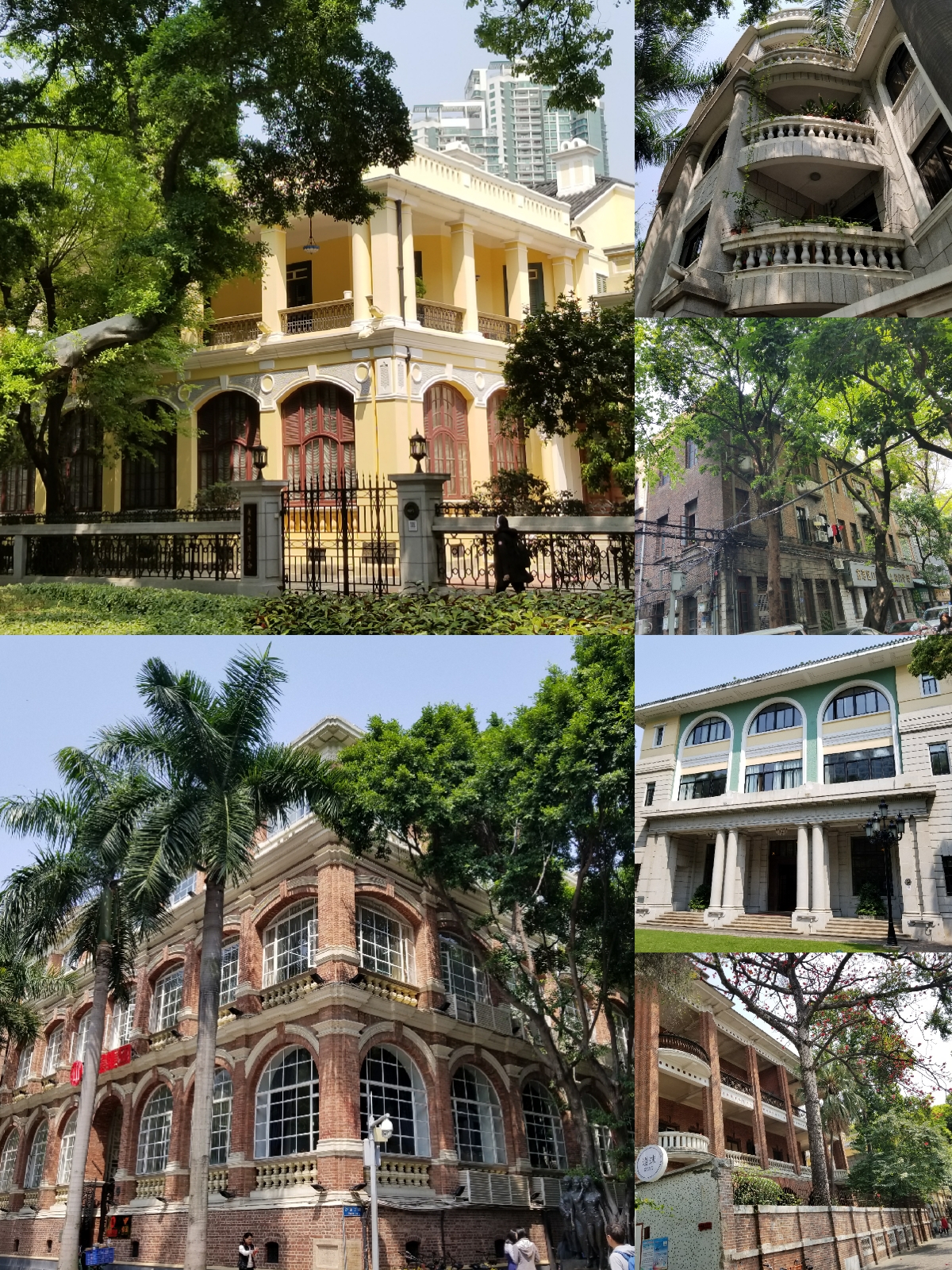 沙面,原来是一片沙洲,后来是英法租界,1946年被国家收回,因文物建筑近百座而出名。