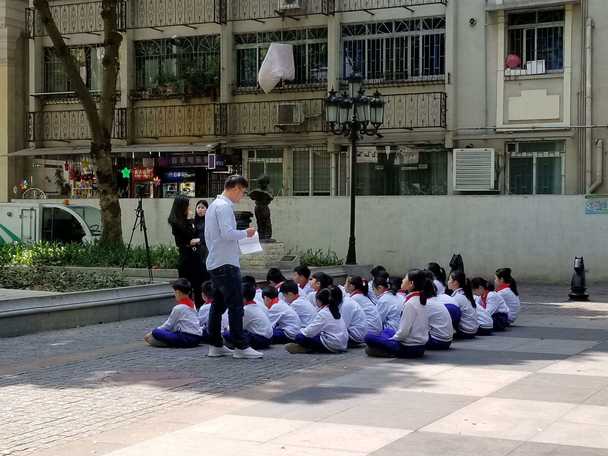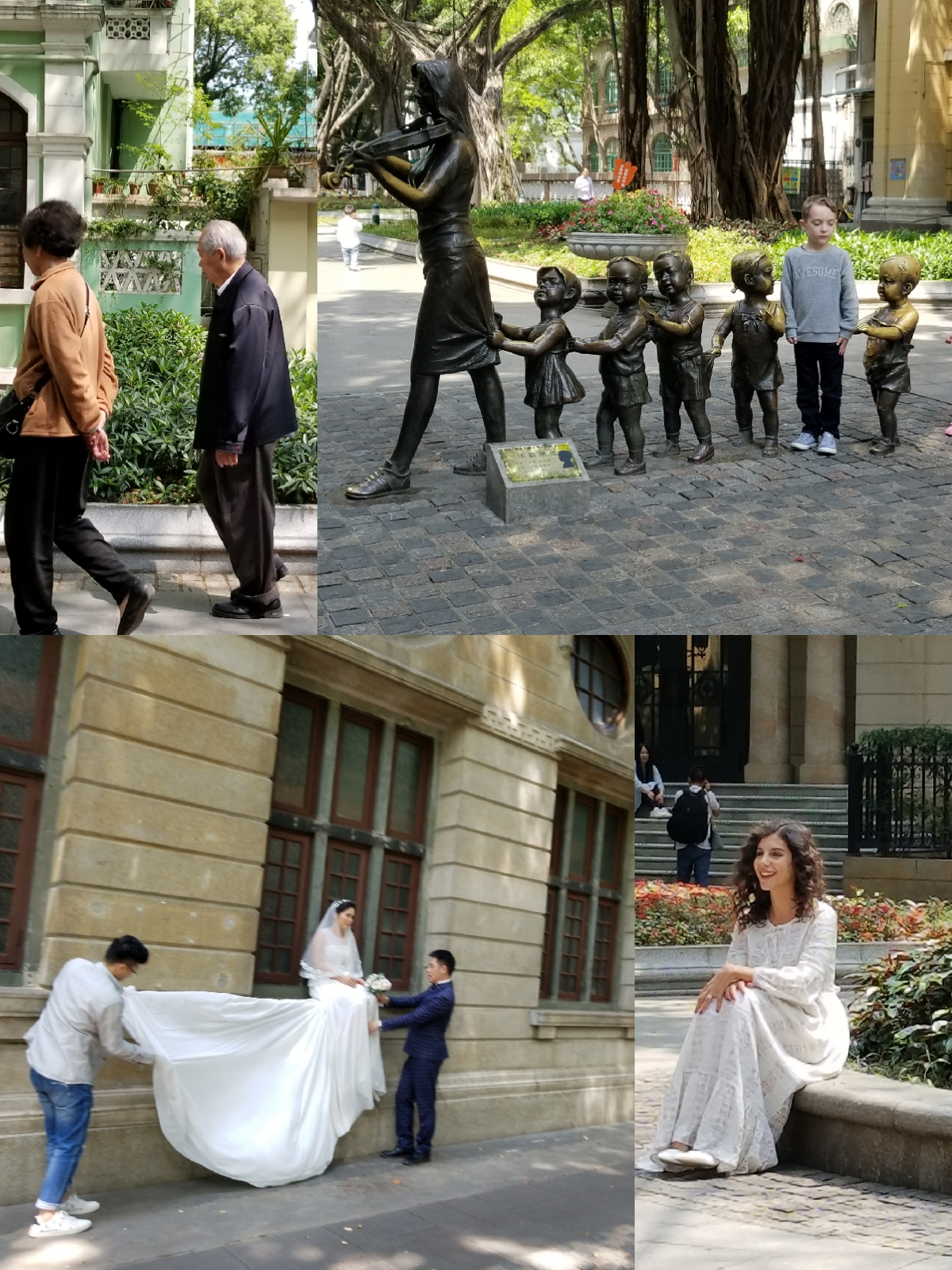 古老的街道上有所沙面小学,老师和孩子们在上体育课,给人一种时空混杂,岁月流逝的感觉。一个世纪前这里的欧美大使、商人、巡警会不会想到百年后的这里是这样的景象。
