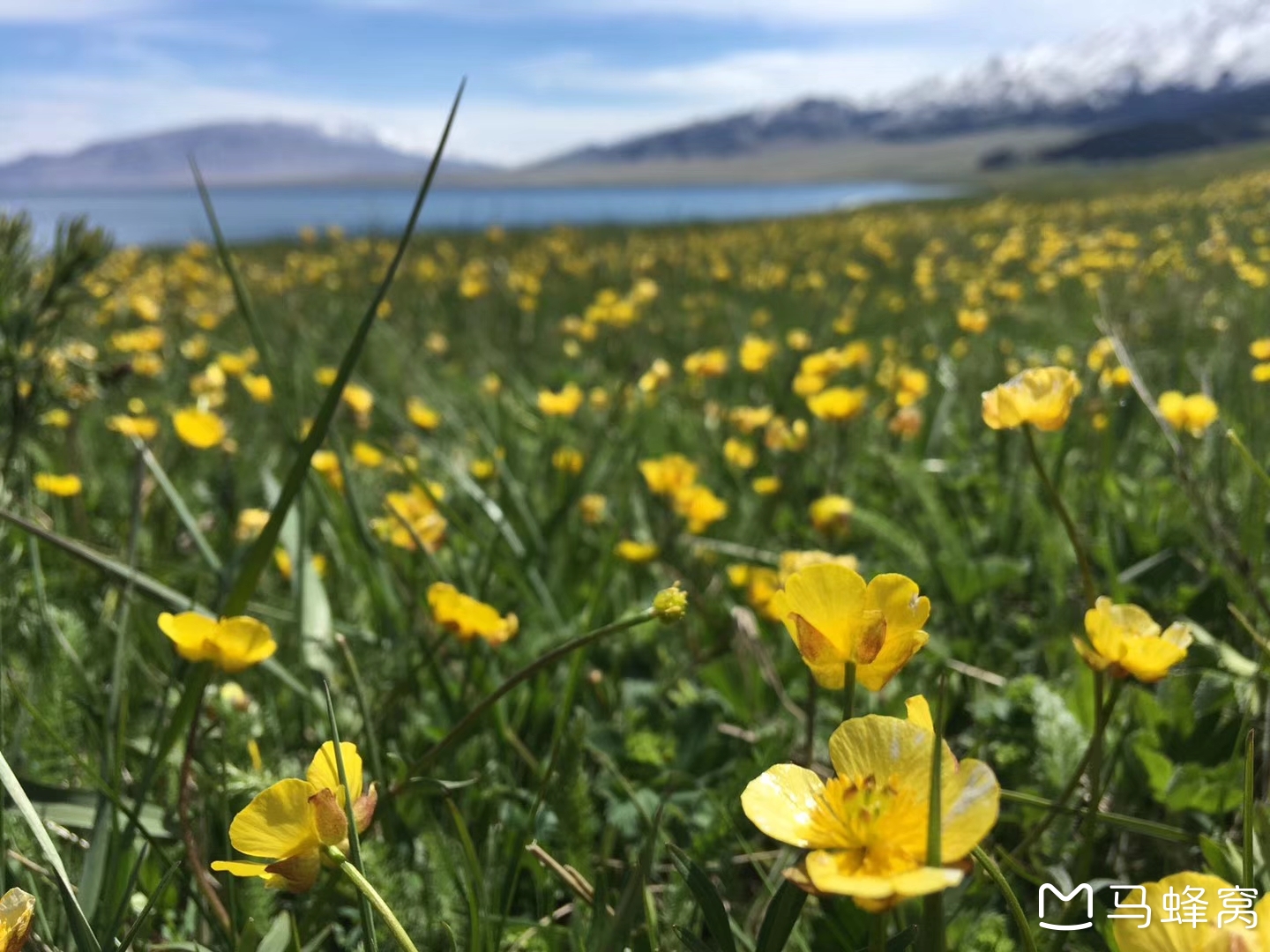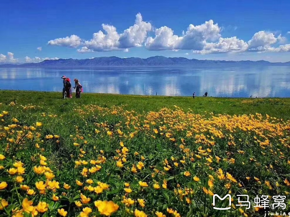 每年的五月开始,赛里木湖就迎来了漫山遍野的野花,布满星星点点黄色的金莲花、橘红色的雏菊,还有不知名的蓝色、白色、红色、紫色。