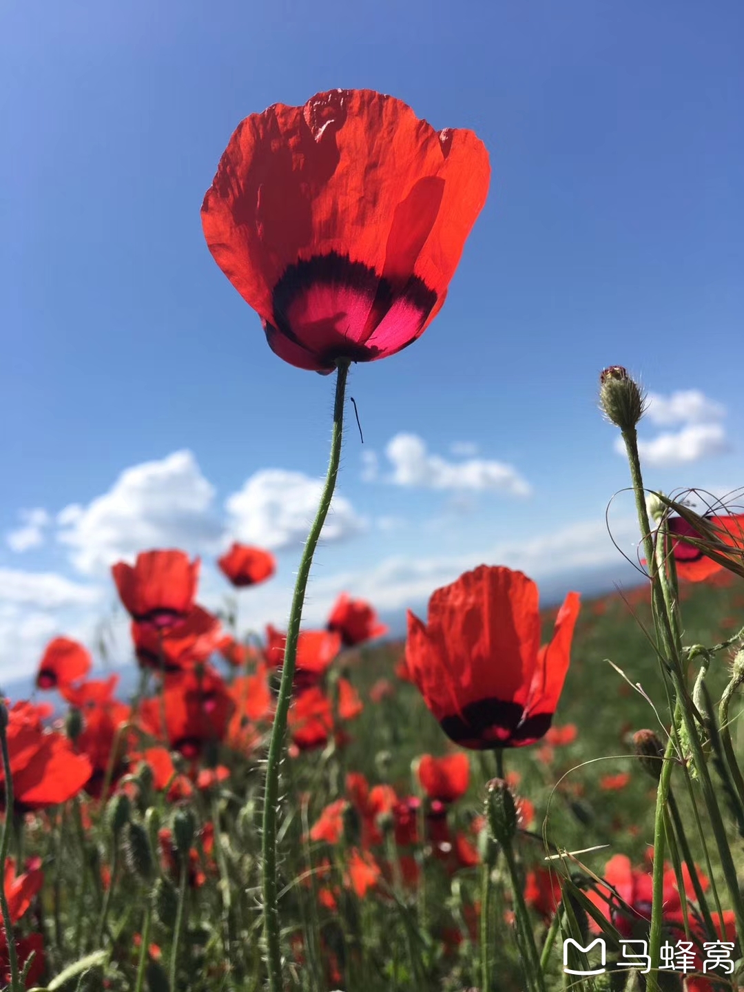 天山红花,又名野罂粟;学名:丽春花;另一个学名更加美丽动听:虞美人,虞美人原是中国古代大美女之一、西楚霸王项羽的爱妃虞姬的芳名。当地哈萨克人称天山红花为“柯孜嘎勒达克”,即“自由的不断迁徙的花”。主要分布在天山草甸之中,每年5月中旬开放,花期15天左右,当然零零星星的红花有一个月左右。盛花季节,艳压群芳,花开时红红火火,形成红花的海洋,天山西部的伊犁大草原,是丽春花的故乡。