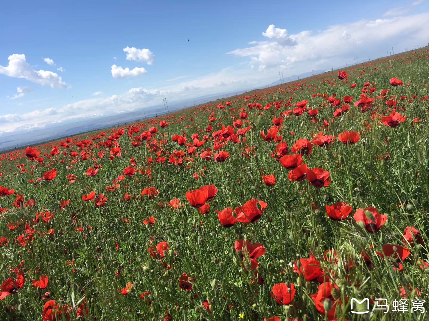 从霍城县的高山草场到伊宁县、巩留县、新源县的广大草原,都有她娇艳的花影。其中以新源县的丽春花最盛。雨水比较好的年份,丽春花开得最好,漫山的坡坡沟沟,一片通红,红花铺天盖地,向远处延伸,如红云连天,几十万公顷、成百万公顷的都是红彤彤的丽春花,形成花的海洋。现在,这种完全没有任何人工干预的、大面积的野生花卉肯定是中国唯一的,在全世界也找不出几个地方了。实在是大自然给予我们人类的美好的馈赠!猛一看,使人兴奋、震撼和惊诧,疑是到了“天女散花”的神话世界,那花红得像燃烧的火焰,又像从天边坠落的云霞,更像朝日初升时的海潮。