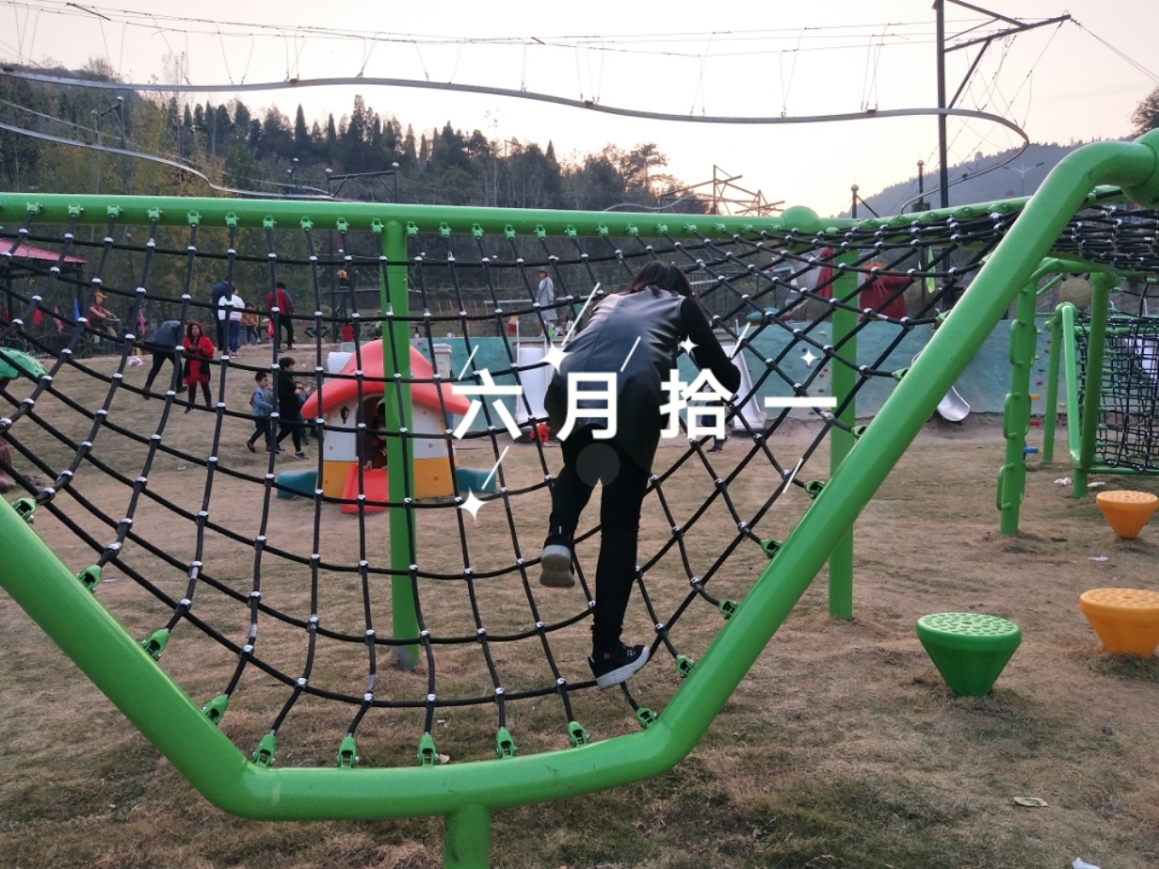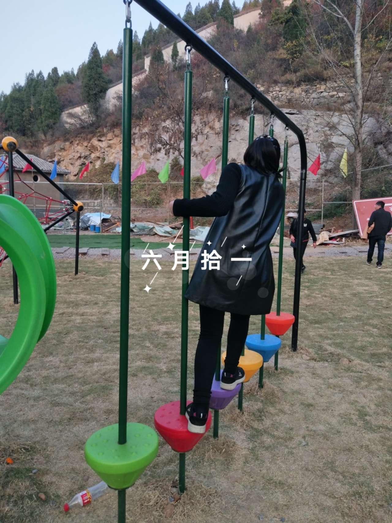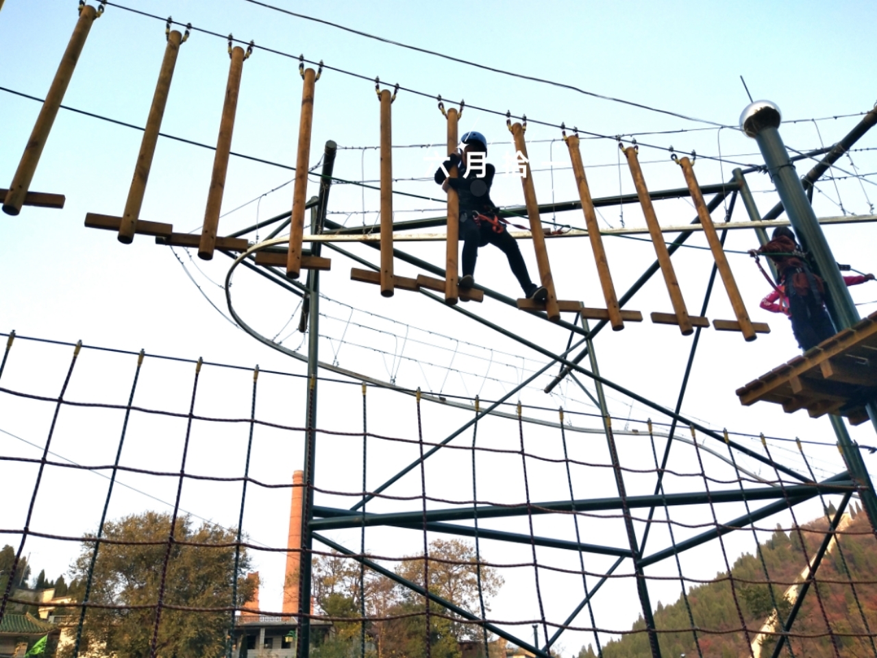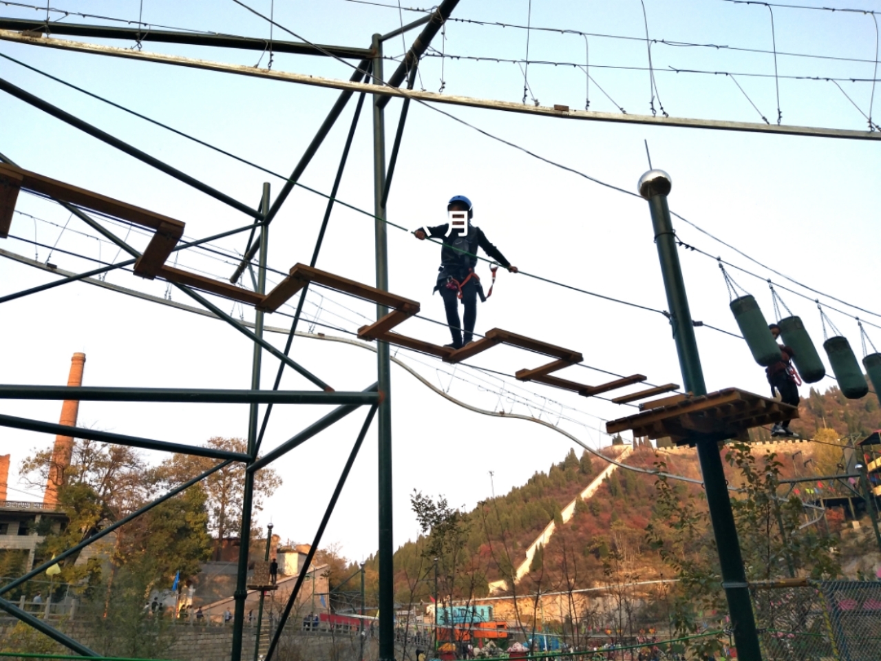 ↓室外的这个拓展,比以前玩的室内的难度大,有两处真的很难,妞妞竟然克服恐惧和胳膊的疼痛坚持到底,中间我都差点让她放弃,真的很棒