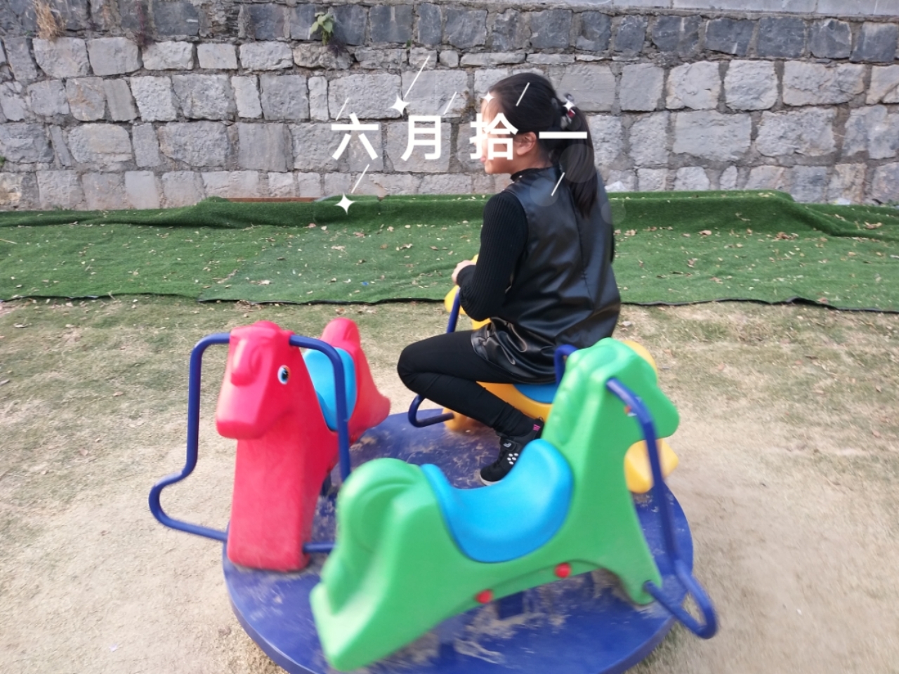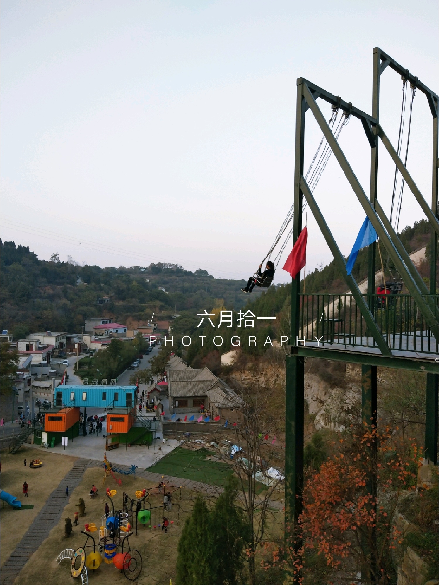 大人是大秋千,小孩是小秋千,我们的身高可以坐大人的,但是我坚持让孩子坐了小的。大人的后面是电力推送,小孩是人力推送。
