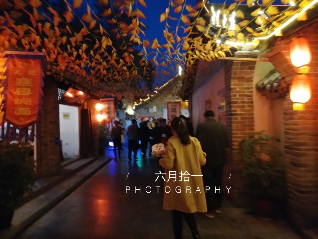 ↓在游乐园玩到天黑,再回到古镇小吃街,吃饱了再回家。