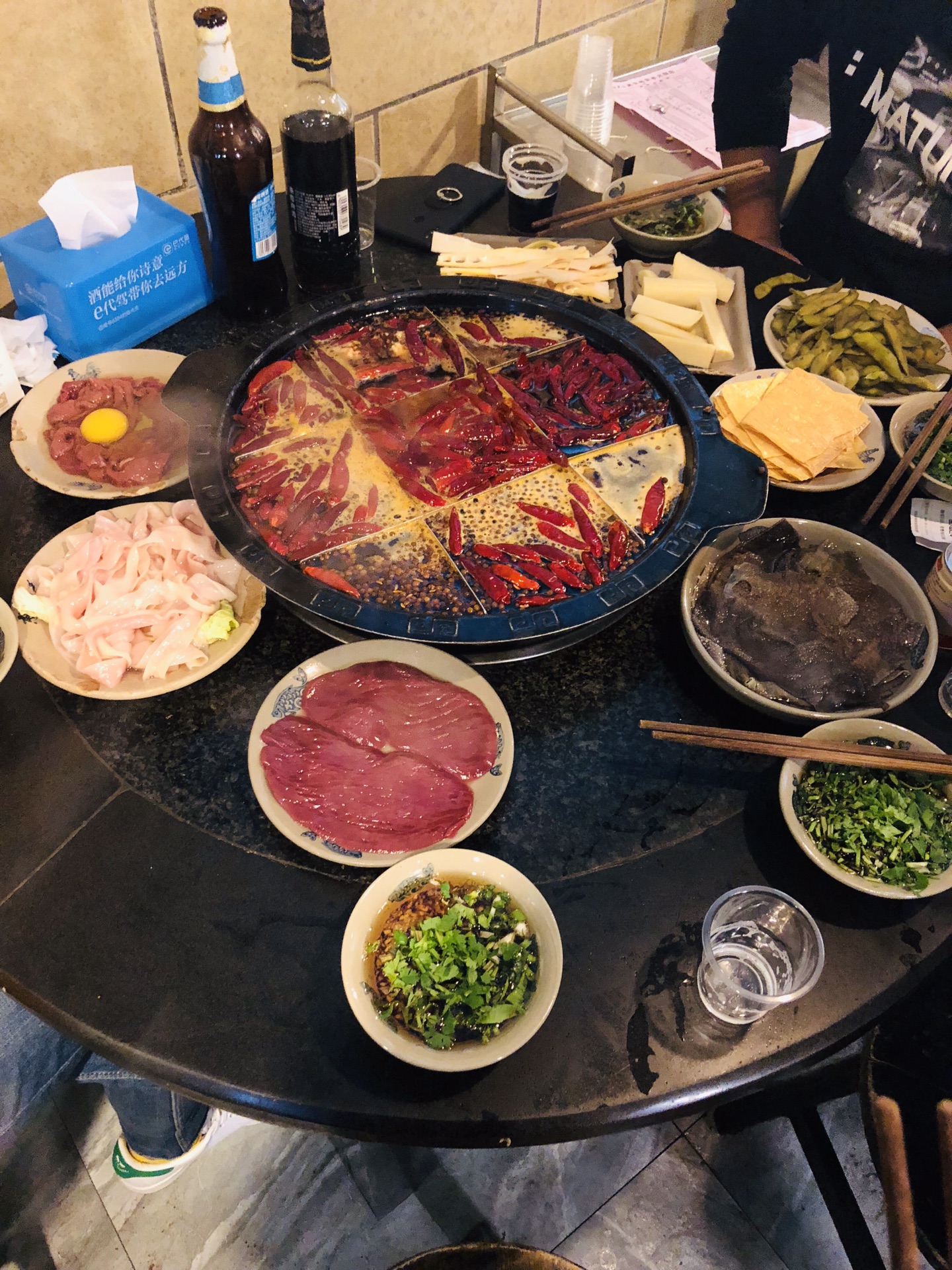 推荐鹅肠!涮到火候又脆又滑,其他香辣牛肉也不错,笋也是真的鲜。开始吃千万不要放狠话,不辣什么的,吃5分钟不停,嘴唇开始反应,然后顺路往下。如果到后面受不了,管老板要碗清水吧……