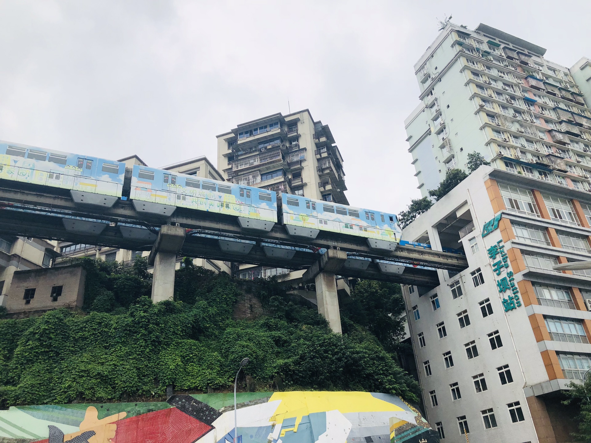 然后就驱车来到网红打卡地点,轻轨穿越居民楼,当地人只是把他当成最普通的交通工具,但是……下面拍照的人可是真多,停留时间:半小时