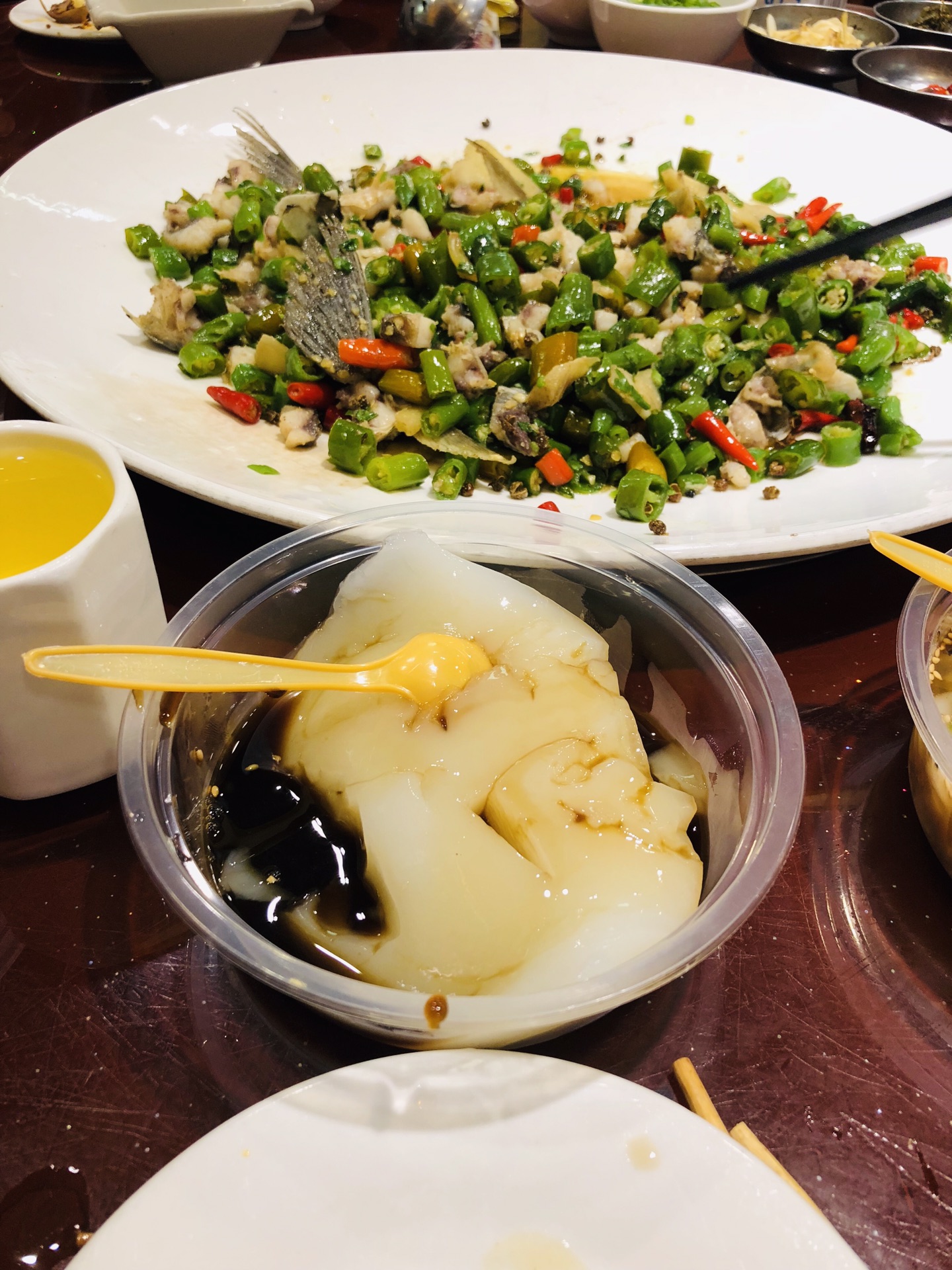 推荐水煮鱼和虾,还有桂花酿小番茄,特别解腻