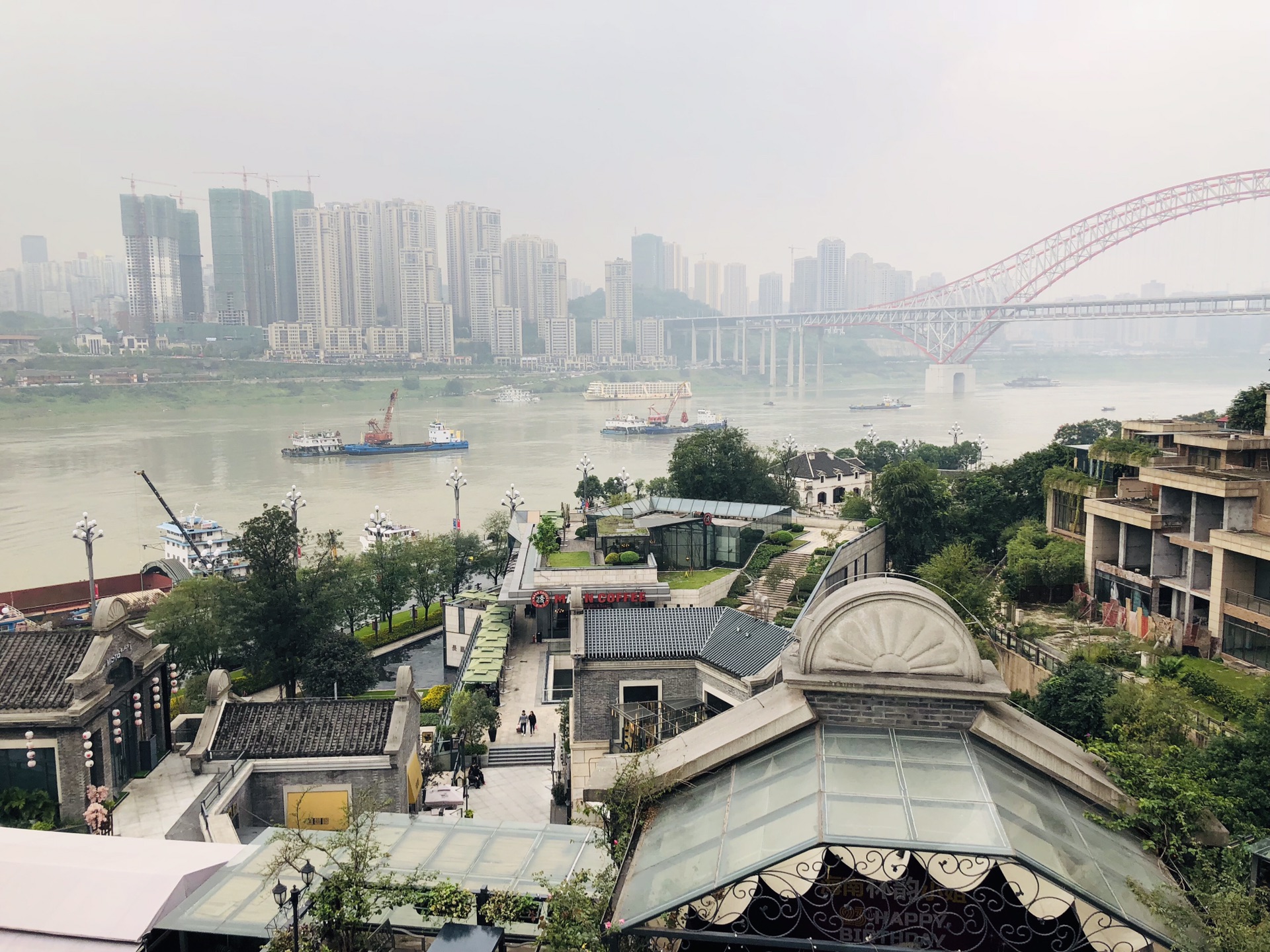 弹子石老街上面有观景平台,可以看到两江交汇的美景(晴天),建议和长江索道计划在一天。