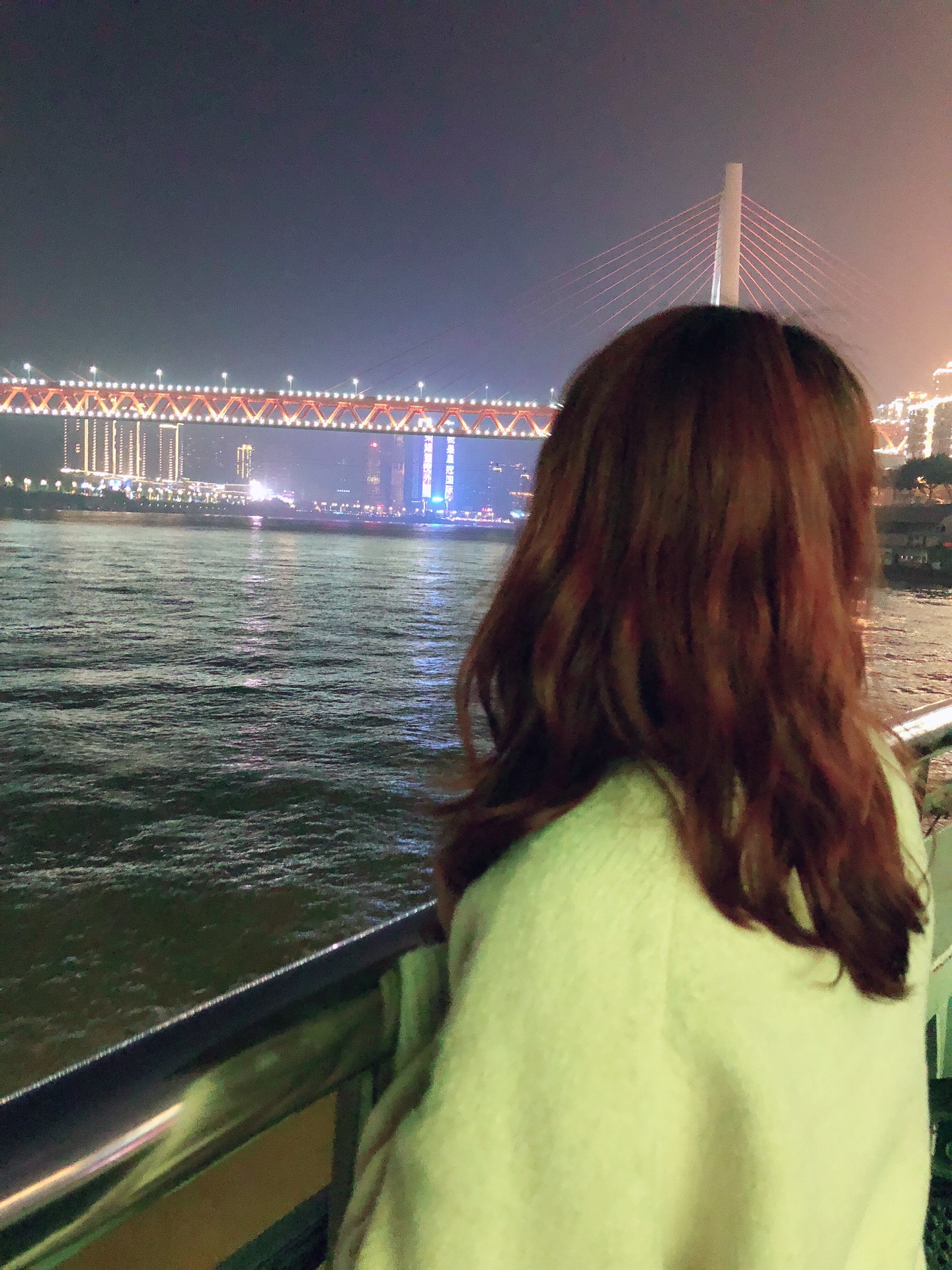 在洪崖洞里面逛吃以后,来到千厮门大桥,看一看洪崖洞远景,再吹吹风,然后就打车回到码头