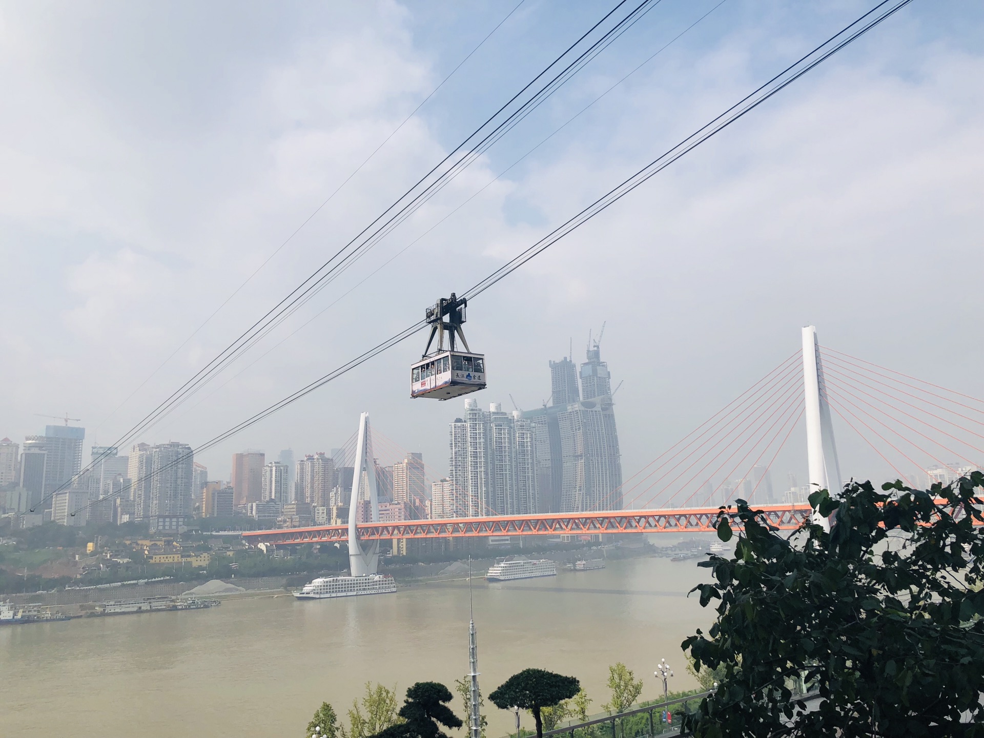 索道全程也就5分钟,可以俯瞰重庆(局部)横跨长江,吹着风很舒服。