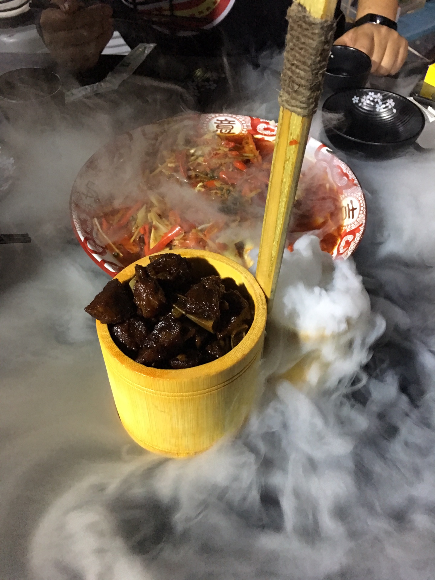 13日晚,到达重庆后,有当地朋友接机,把行李放到住处(朝天门码头附近民宿),开车出去找洞子火锅,距离不远,但是开车开的迷糊,11点找到,还是座无虚席,味道很赞,首次感受重庆地道火锅,三个东北人有点没抗住