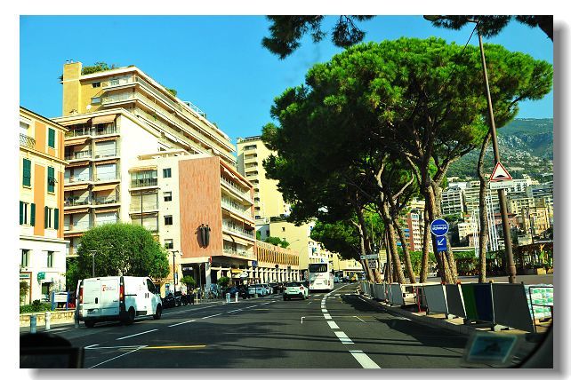 离开停车场去景点了,从山上往下面走,都是车行路,这条路还是F1的赛道,这个赛道平时就是正常的城市道路。
