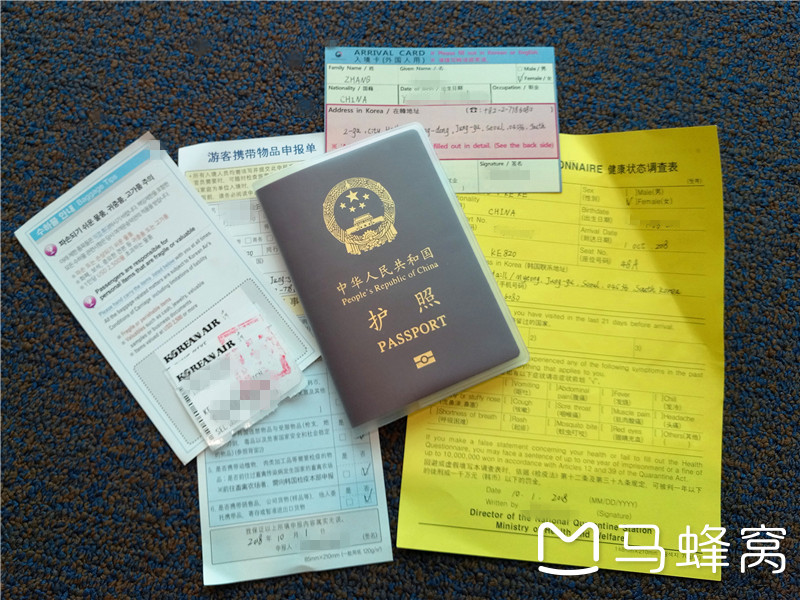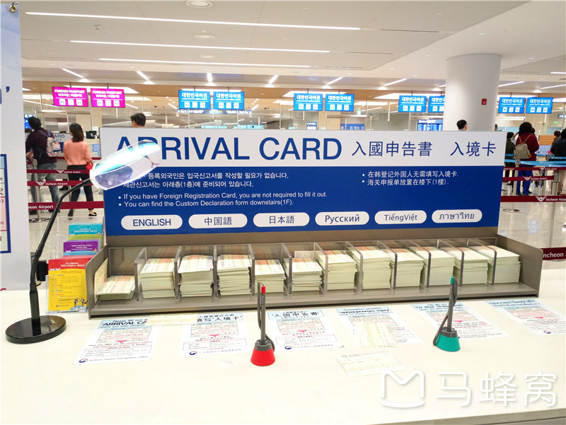 在飞机上,空姐会给你发入境单,3张让你填写,包括健康状态清查表、携带物品申报单(提前做好要买多少贵重物品的计划,填写物品申报单的目的是,超过携带的贵重礼品比如烟、珠宝、电子产品等可以减免一部分税收)、入境卡必须全部是韩文或者英文,下飞机后出入关卡的时候交给过境工作人员。