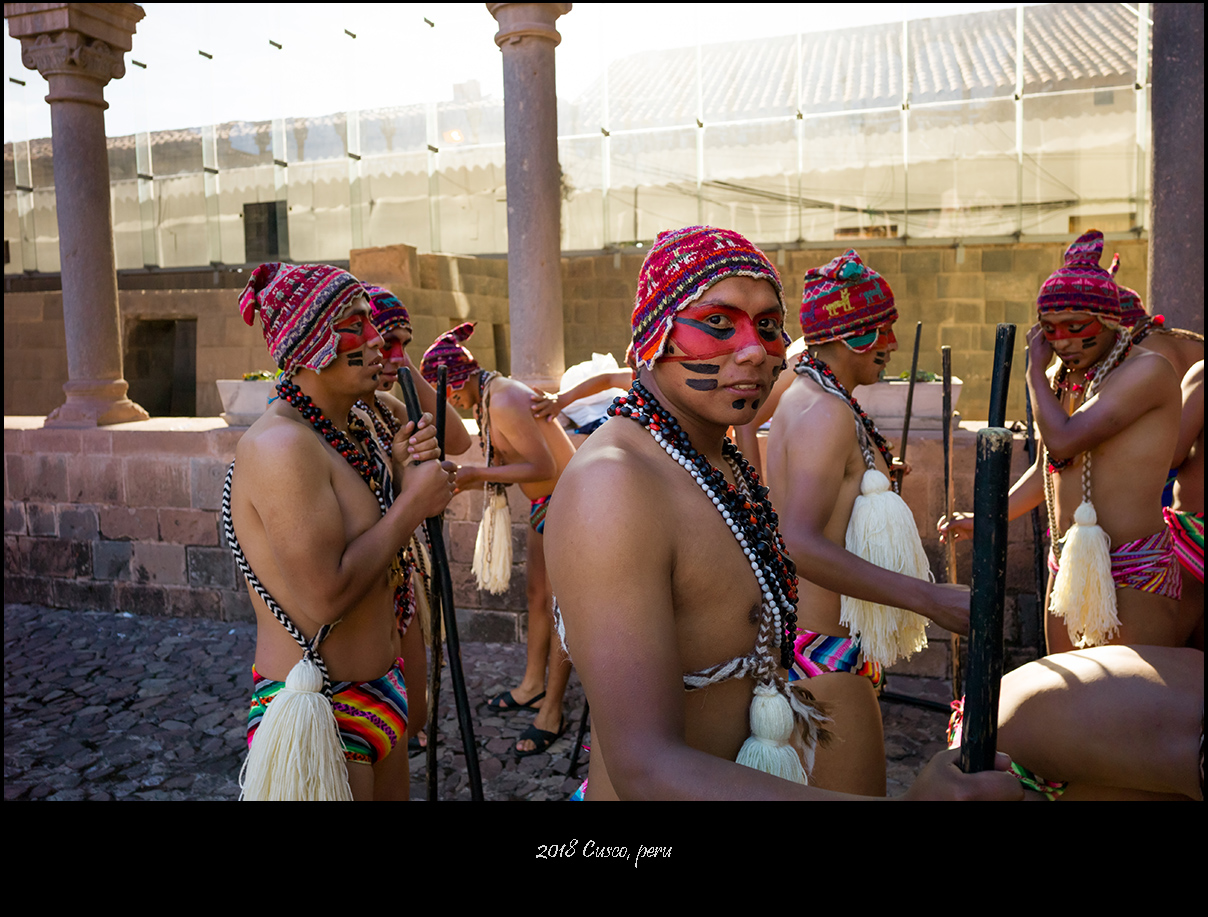 在古城中央武器广场搭建的圣坛顶上,大卫再次引领民众聆听太阳神的旨意。这一次他从高处撒下古柯叶,并询问大祭司是否感知到太阳神的意愿。两个祭司负责解读神灵的回复,并据此向印加王提出建议,通常会是向太阳神供奉火焰。出于安全原因,现代太阳节的祭祀仪式会以画在布幔上的火焰图形的抽象方式代替真实的篝火。你可以想象当年广场中巨石搭建的圣坛上熊熊篝火,烈焰燎天的壮观景象。彼时万民肃穆,对天祈愿,火光如血色,在太阳的子民们红褐色的脸庞上跳动不息。