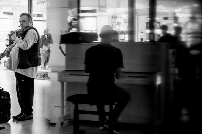 ▼ 拉小提琴的胖哥哥特别可爱,无论谁到钢琴边弹奏一曲,他都会凑上去合奏,小眼神还特别挑逗。这是法国,只要不太赶时间,会弹的人都会秀上一曲,琴声不断,唯一变化的是席上的演奏人。
