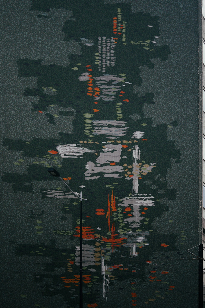 ▼ 城市的墙壁上经常会出现一些抽象的画作,是红色帆船和睡莲吗?